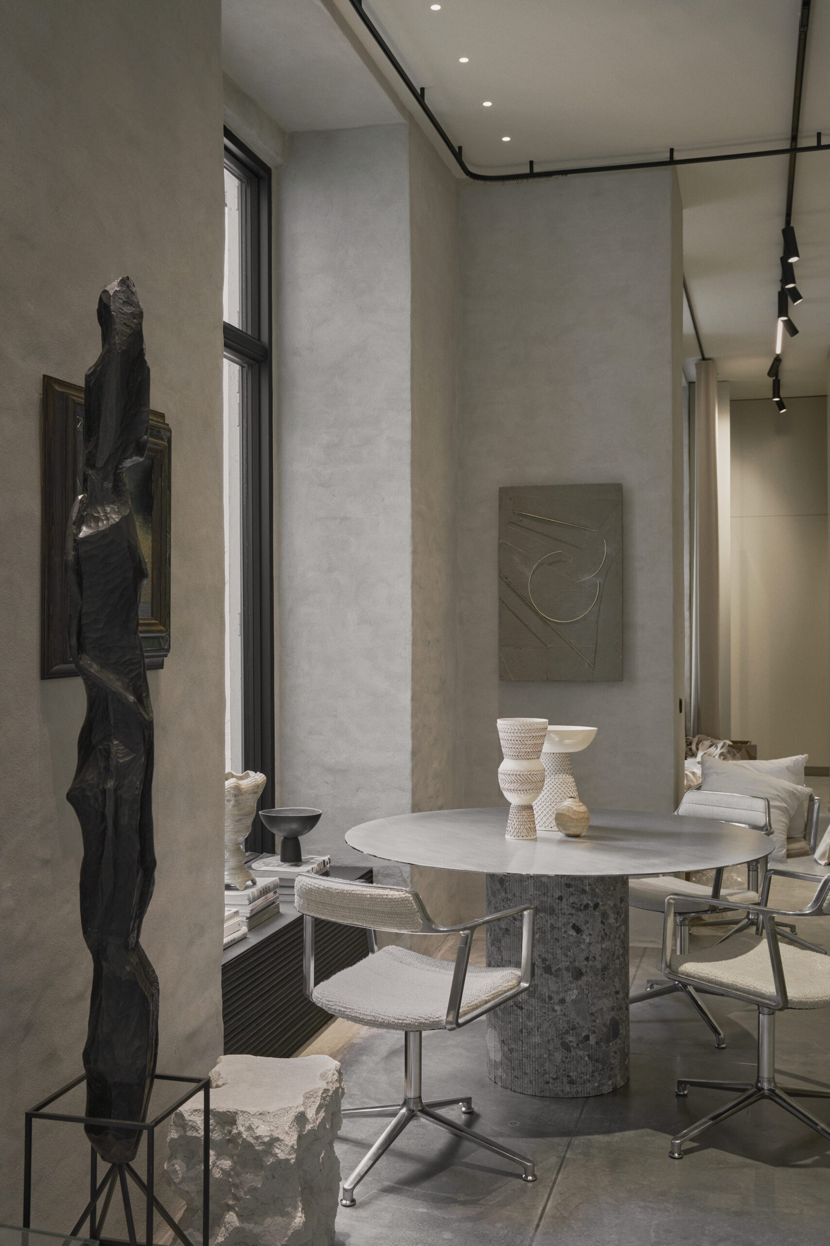 Reimagined by Julie Cloos Mølsgaard, the space radiates design quality with a harmonious palette of soft and muted tones, complemented by materials such as metal, marble, and Vipp’s signature upholsteries.