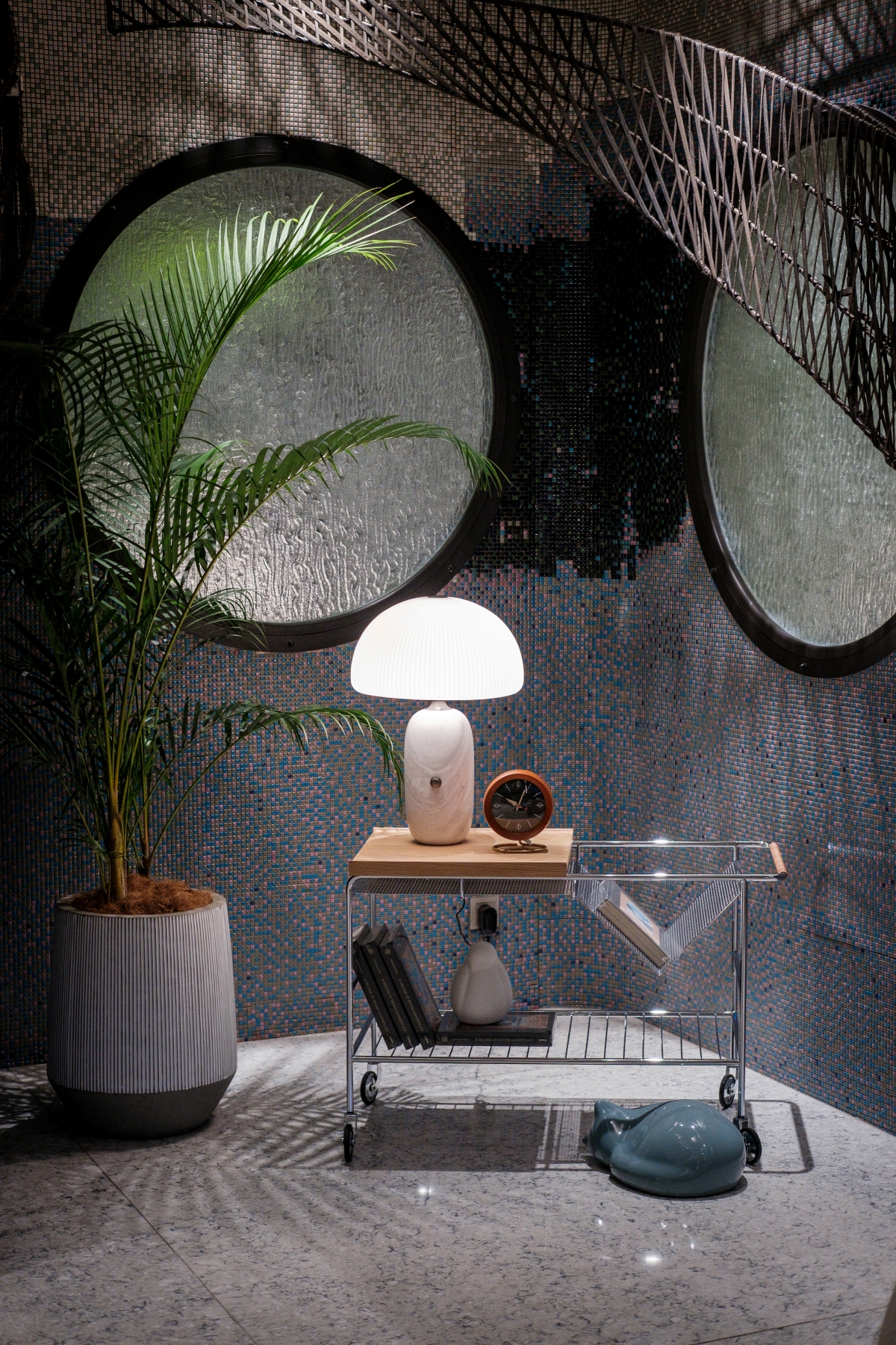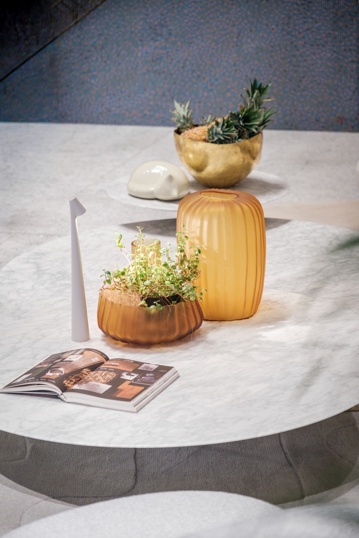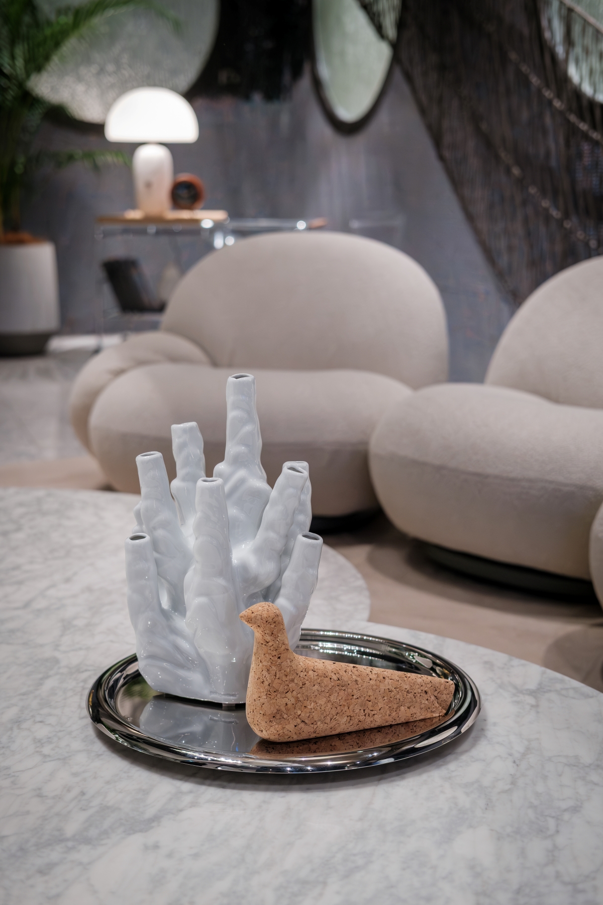 Soft contours and relaxed silhouettes set the tone. The forms stay friendly and organic, offering an invitation to sit, linger, and enjoy the scenery around them. Their design draws from the coastal landscape: soft contours, fluid silhouettes, and a natural rhythm that guides people in and out of the room with ease. Woven forms and curved lines introduce a sense of motion, mimicking the tide through texture and light.