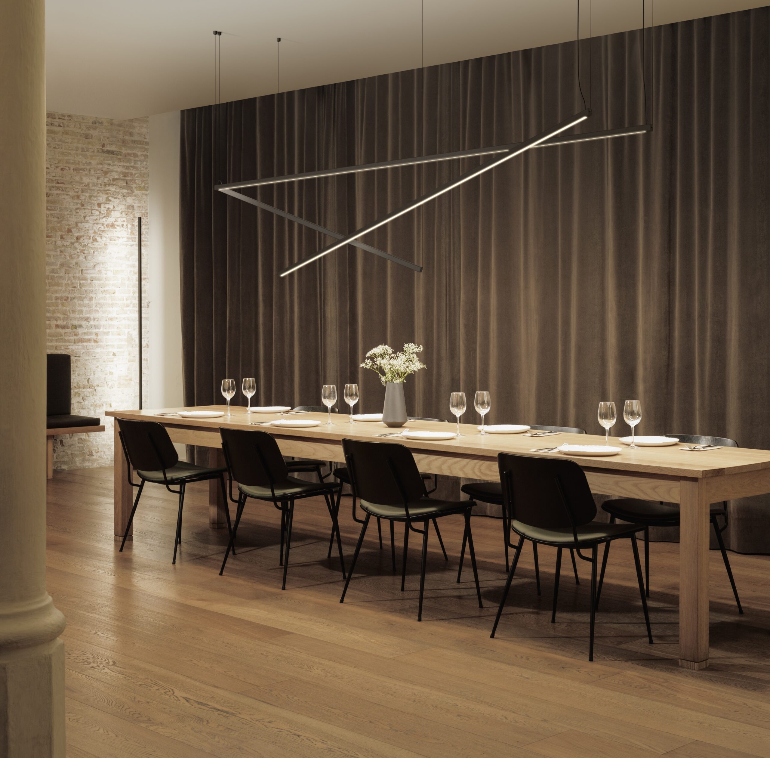 Fusing technology, space, and architecture, Sticks offers a creative lighting toolkit for integrating light elements in an interior space. Pure and graphic, the minimalist aluminium rods transform linear light into a floating sculpture.