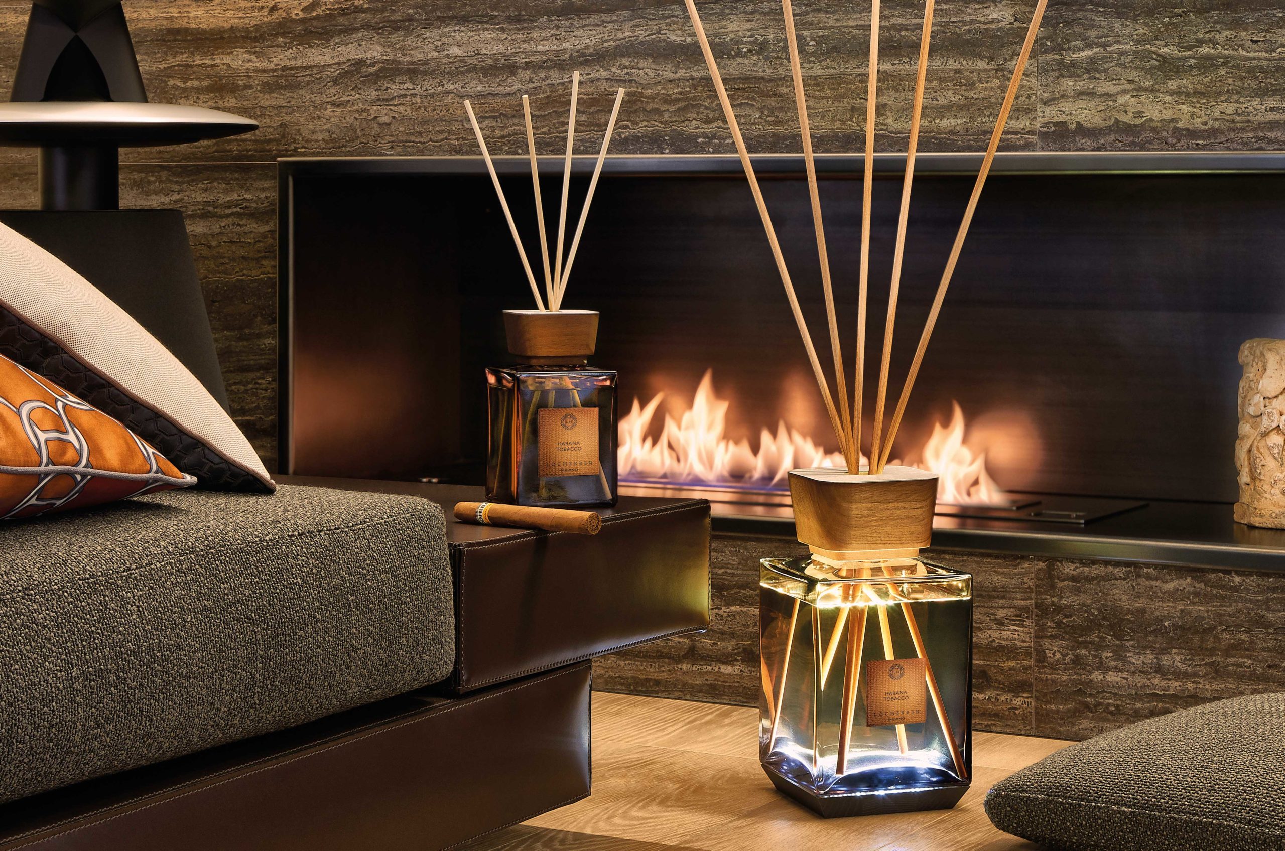 The product selection includes hand-painted glass bottles (to increase the ability to reflect light), different types of stoppers (in wood orclay) that recall classic decorative art or natural shapes, jacquard fabrics for labels, as well as fine wood. Every detail is painstakingly researched. Nothing is left to chance but is the outcome of careful and rational choices. Locherber Milano’s diffusers thus become furnishing items and an integral part of an interior project.