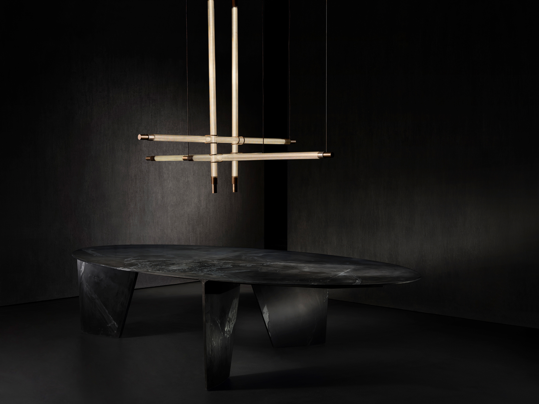 Among the highlights of the collection are three new lights: Spyder X, Gatsby, and Legacy. Spyder X, an evolution of the iconic Spyder introduced in 2022, brings industrial chic to any space with its intertwined lines. The Gatsby chandelier reinterprets a classic design with a modern, rock-inspired twist, casting mesmerizing shadows in a sophisticated, three-dimensional manner. Legacy, a technologically advanced dimmable LED light, provides 360° illumination, making it a versatile addition to any interior design project.