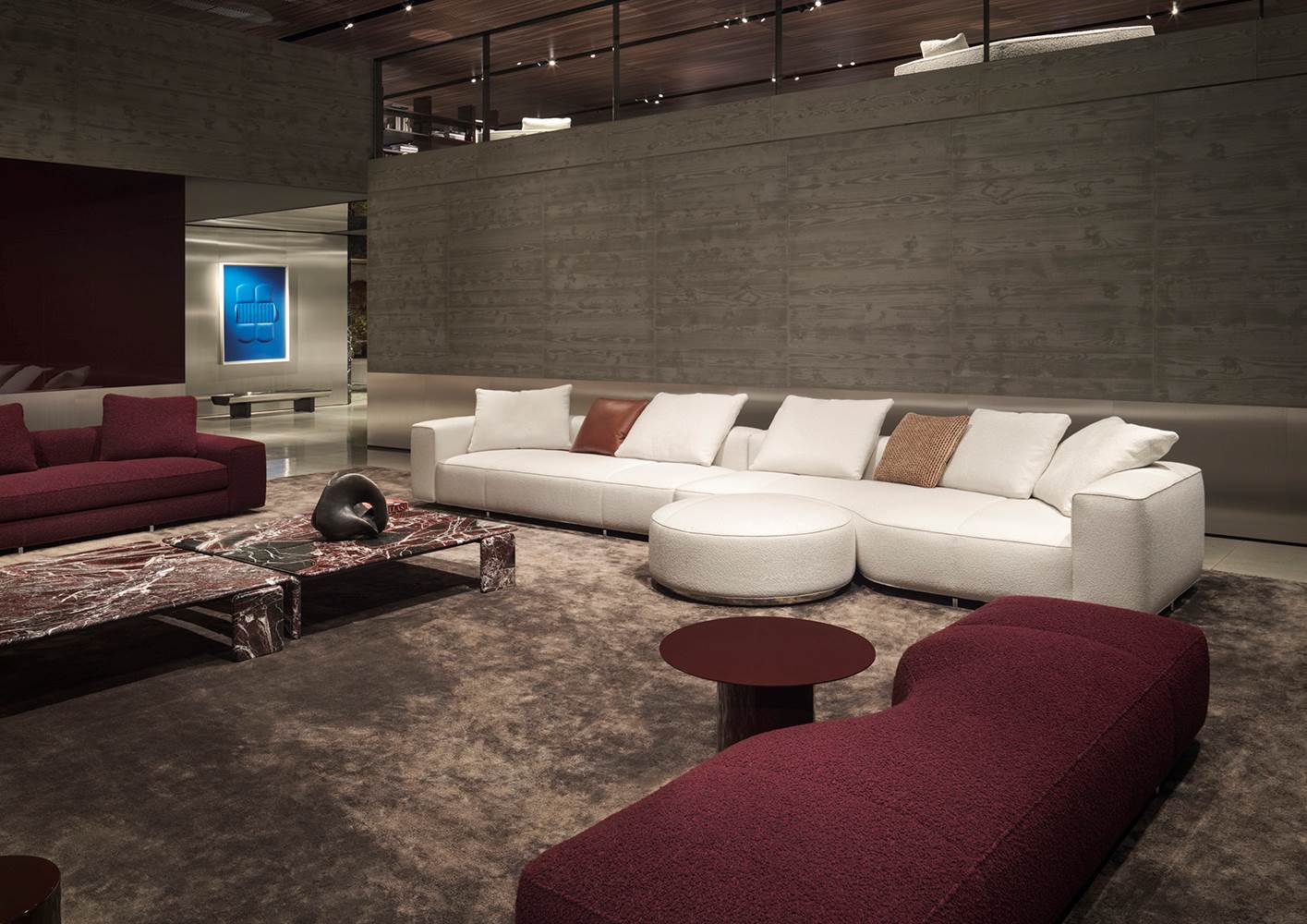 Playing with contrasting accents and harmonious combinations, the Minotti Pavilion 2024 takes visitors on an immersive journey into the brand’s universe, expressing its timeless aesthetic.