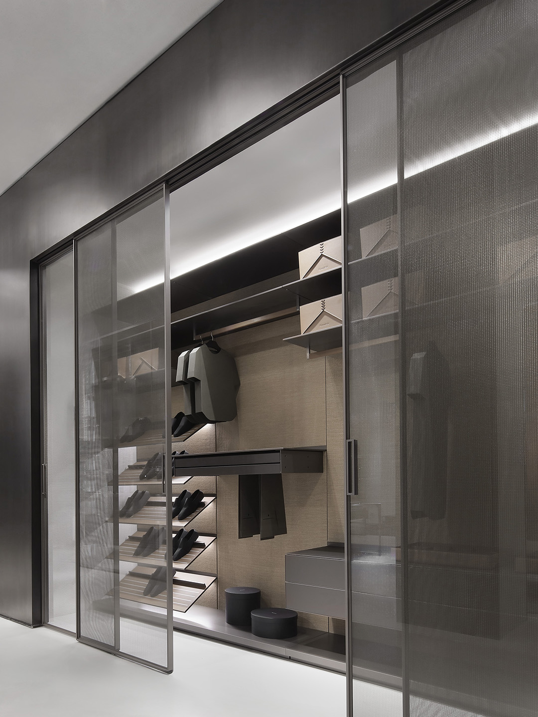 Attention to detail and technical innovation combine perfectly in the unprecedented, 4-door version of Aliante, designed for storing cherished objects, and in the internal Modulor storage system with the new, sloping shelf for storing shoes.