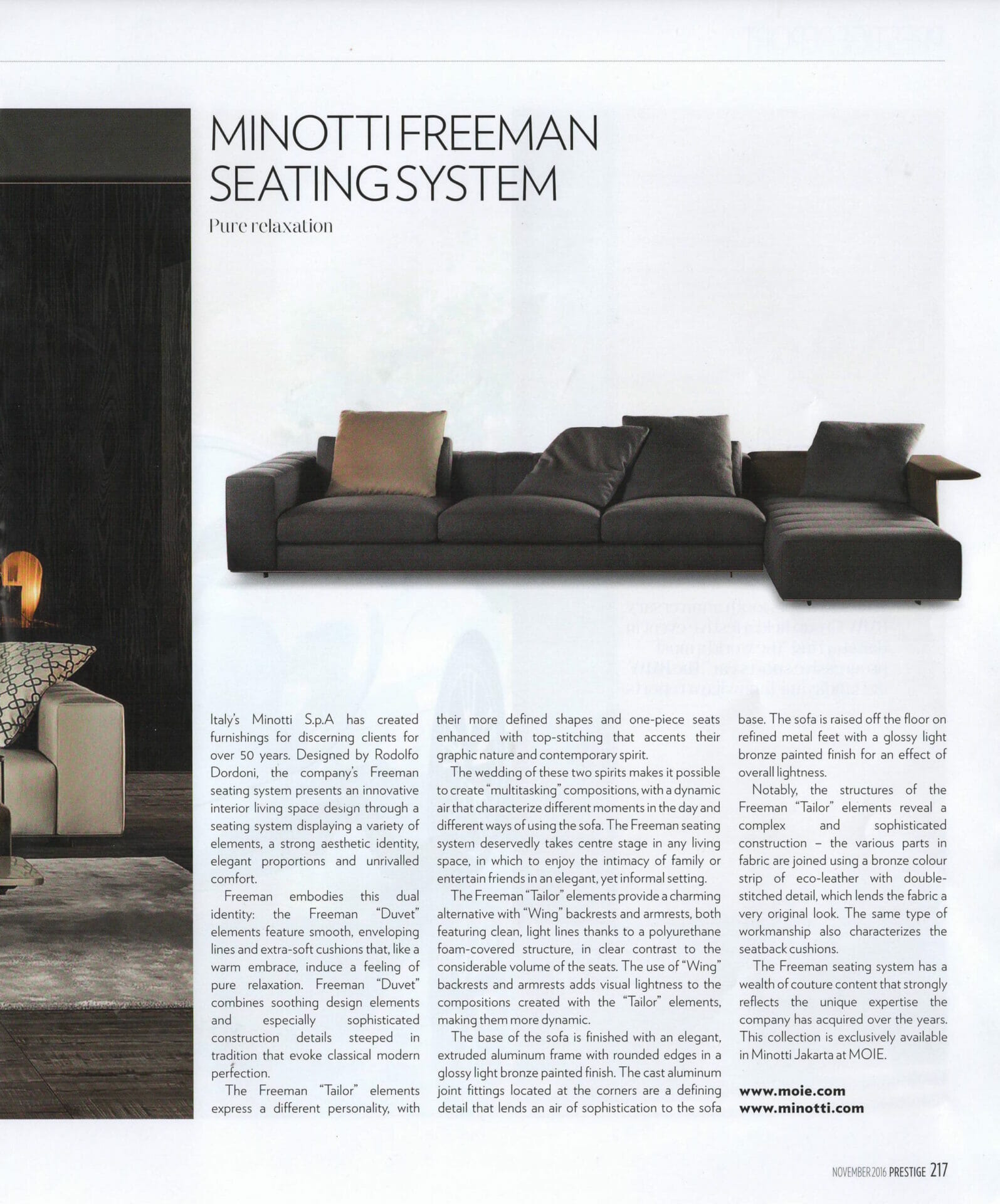 Innovating interior living space design through a seating system displaying into a variety of elements, with different features, a strong aesthetic identity, elegant proportions and unrivaled comfort. The Freeman seating system deservedly takes center stage in any living space, in which to enjoy the intimacy of family or entertain friends in an elegant, yet informal setting. Read further on Prestige November 2016 edition.