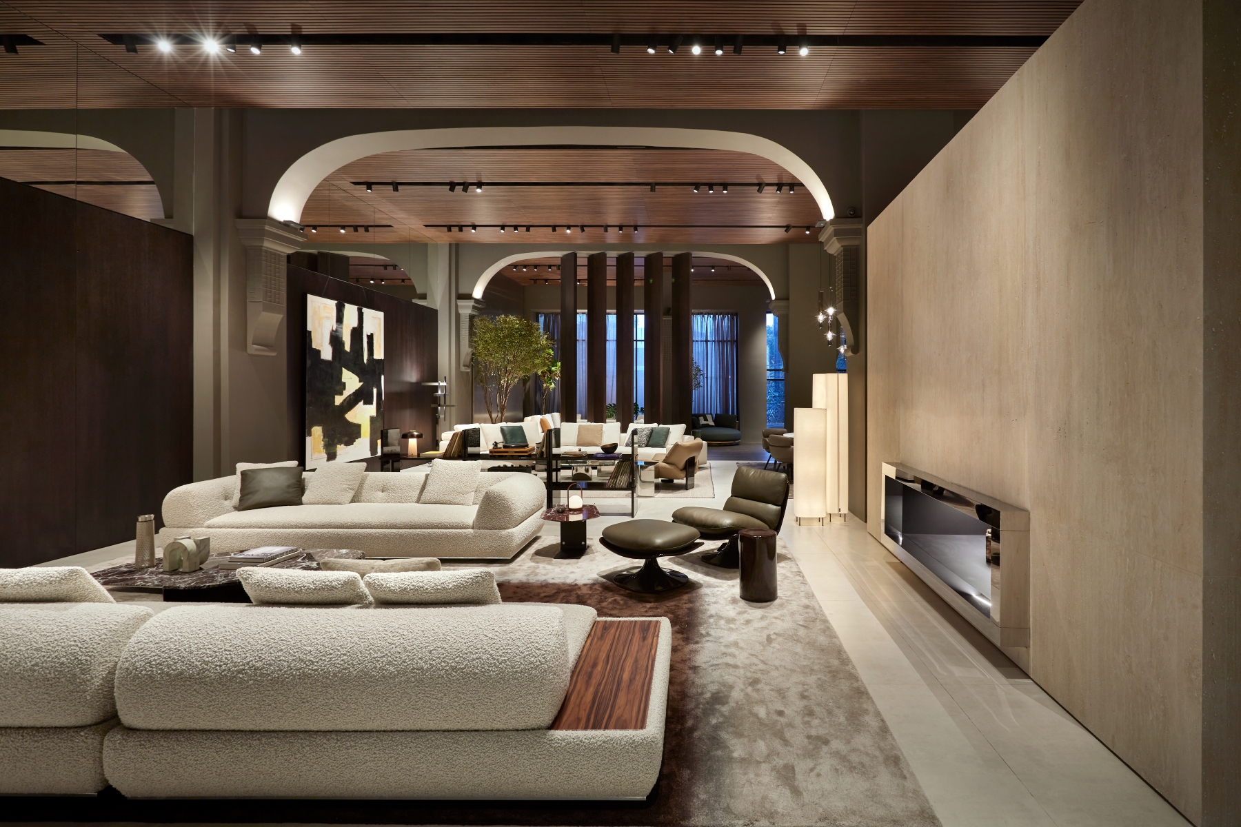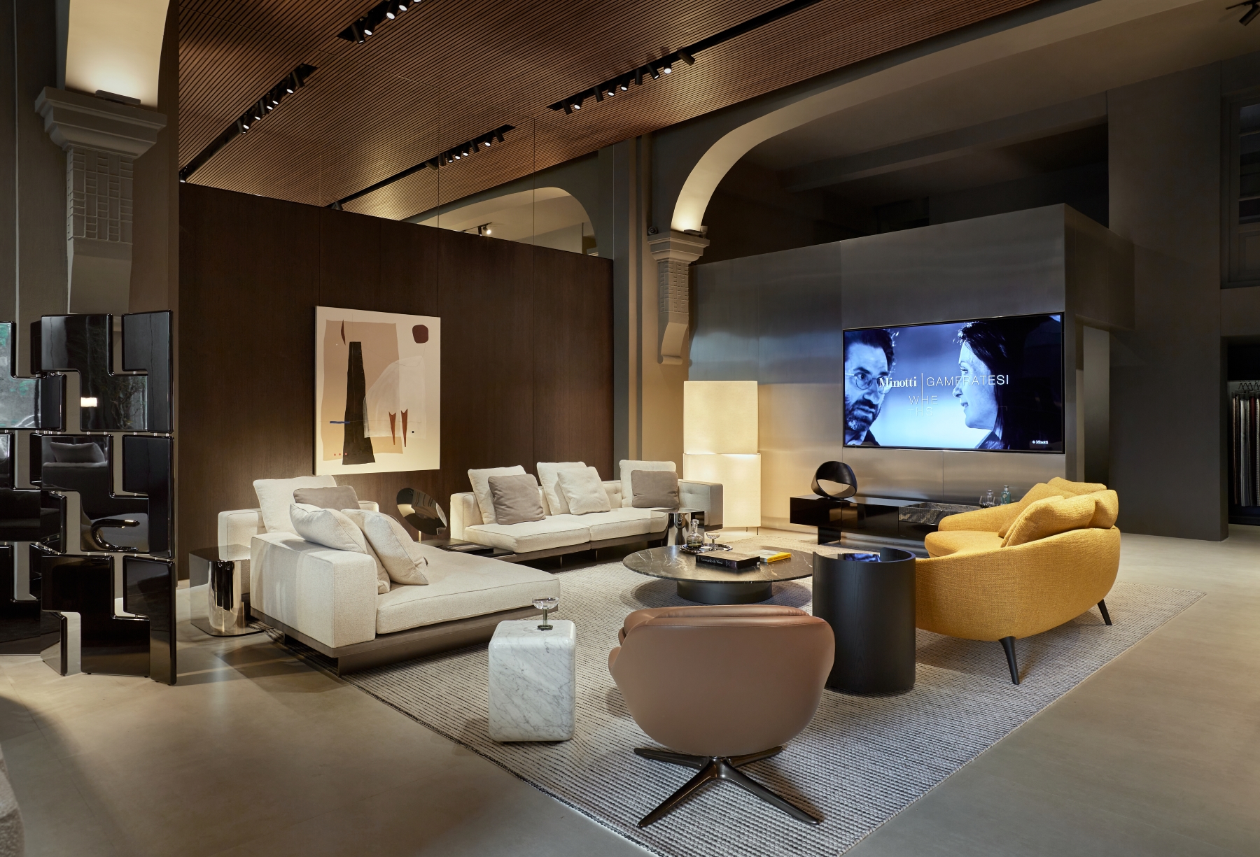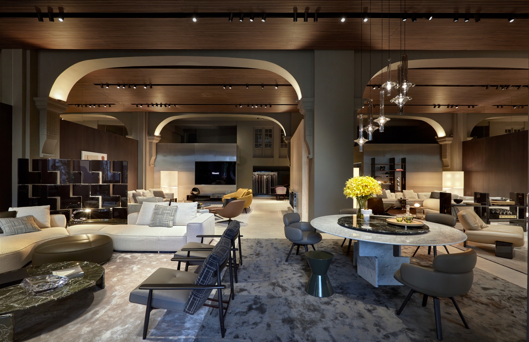 The redesigned 350 sqm space introduces a sophisticated architectural language that combines timeless elegance with contemporary sensibilities. The renovation reflects Minotti’s commitment to providing an authentic brand experience, presenting the collection within a meticulously crafted setting that resonates with its signature Italian craftsmanship and style.