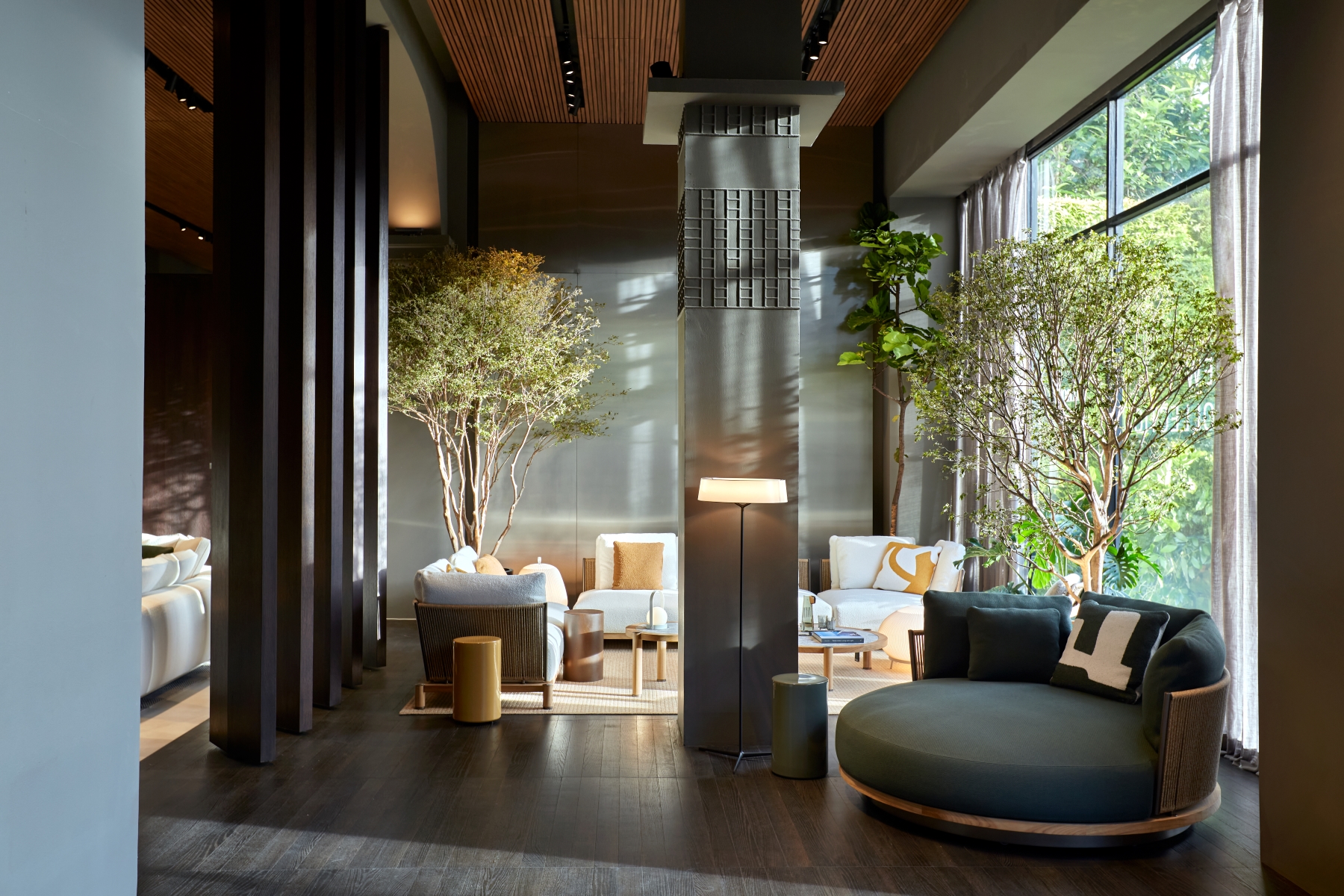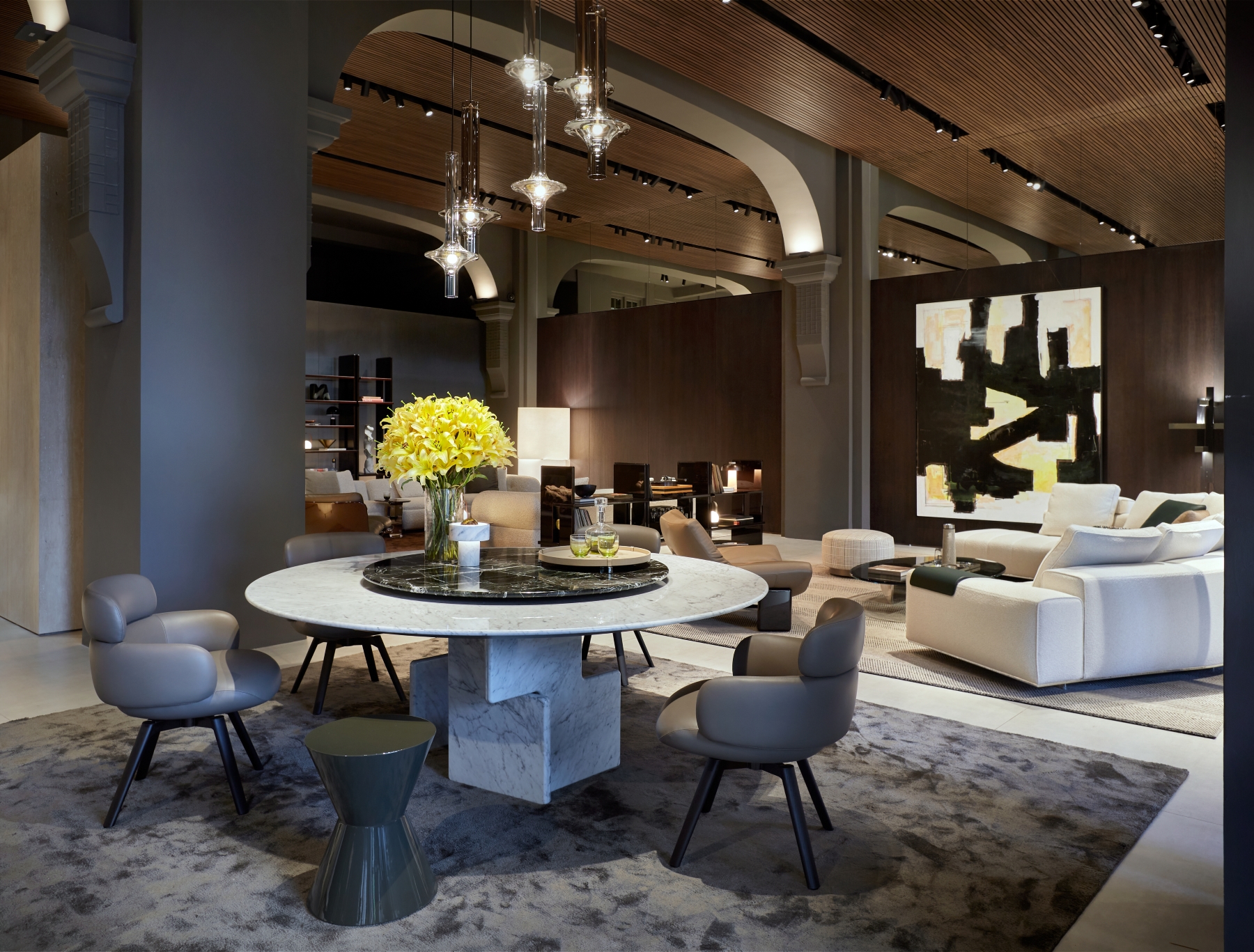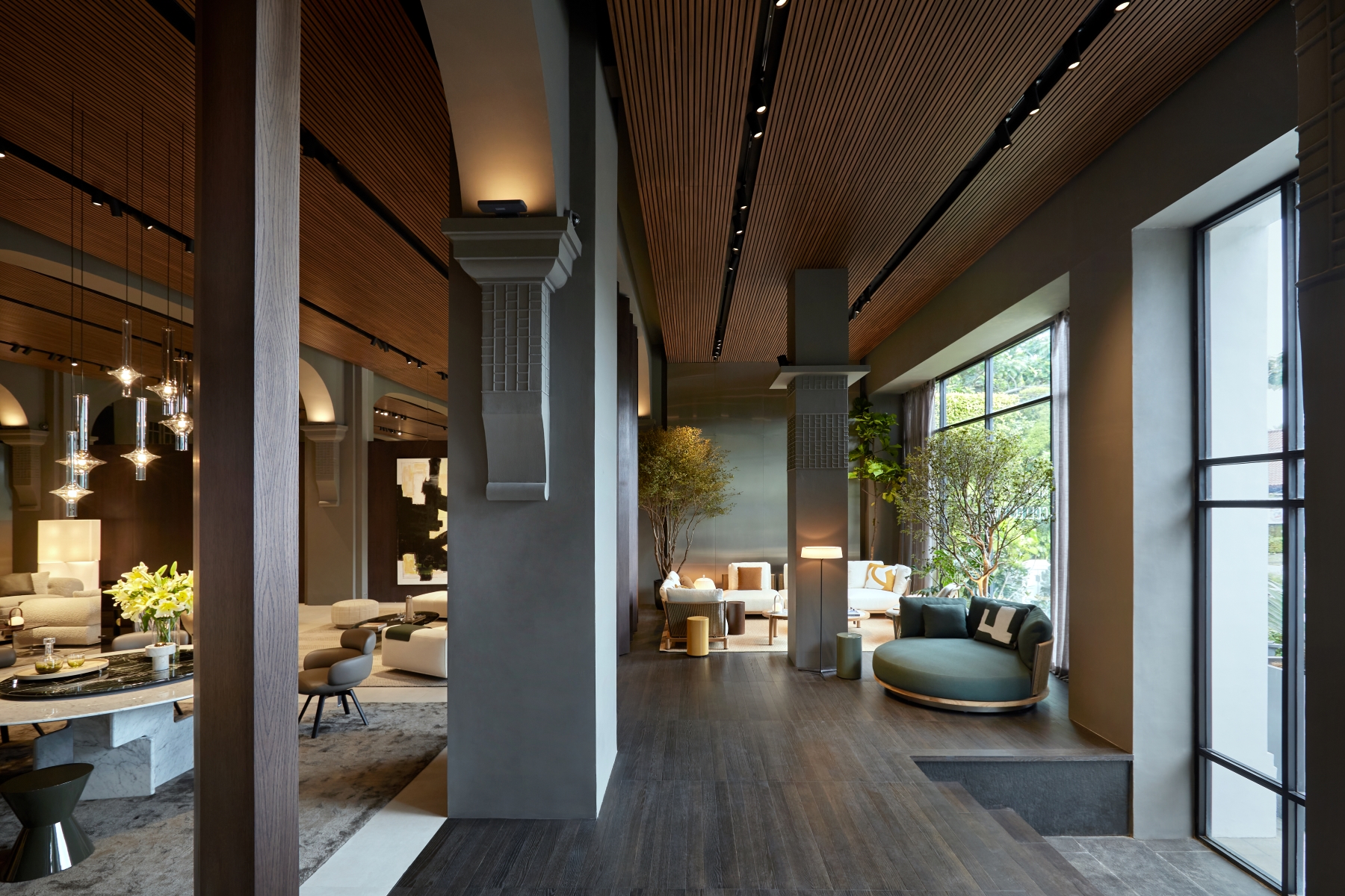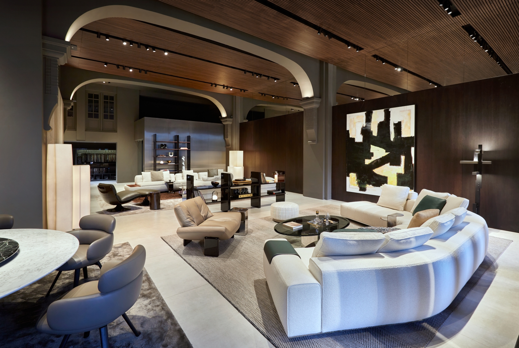 The redesigned 350 sqm space introduces a sophisticated architectural language that combines timeless elegance with contemporary sensibilities. The renovation reflects Minotti’s commitment to providing an authentic brand experience, presenting the collection within a meticulously crafted setting that resonates with its signature Italian craftsmanship and style.