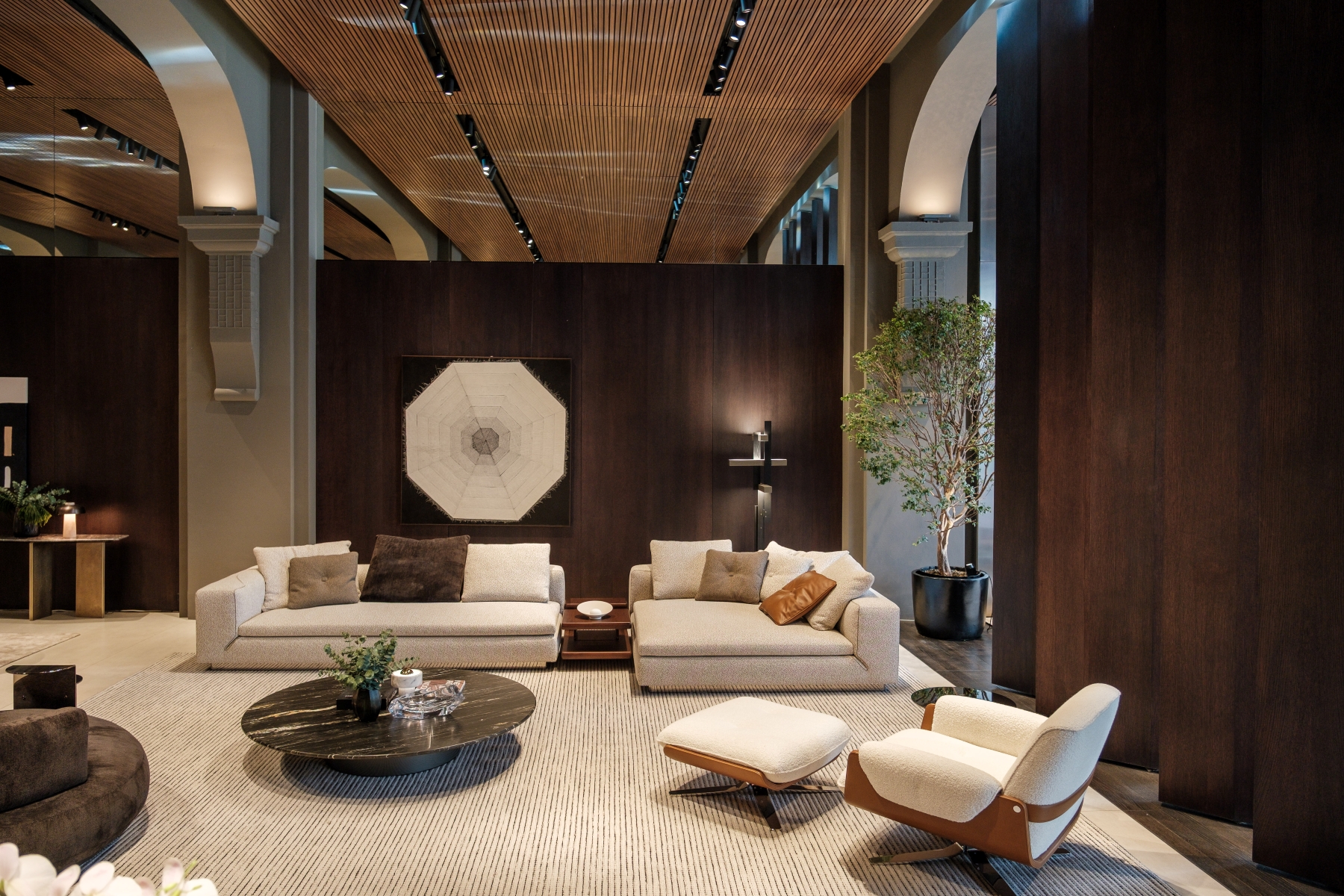 The Jakarta presentation showcases key families that shape the 2025 narrative. Vivienne by GamFratesi evolves from the iconic armchair into generous, sculptural compositions defined by soft curves and tailored precision. Riley by Hannes Peer introduces bold, architectural volumes to the living area, a modular system that reflects contemporary ways of lounging. Saki by Nendo brings an organic, fluid silhouette to the collection, expressed through petal-like profiles and refined, almost sculptural softness. Bézier by Marcio Kogan/Studio MK27 celebrates the elegance of the Bézier curve, offering enveloping seating and fluid geometries that soften architectural spaces. Completing the presentation, the Libra family by Giampiero Tagliaferri adds a calm sense of balance and modern clarity, continuing its role within Minotti’s broader design language for 2025.