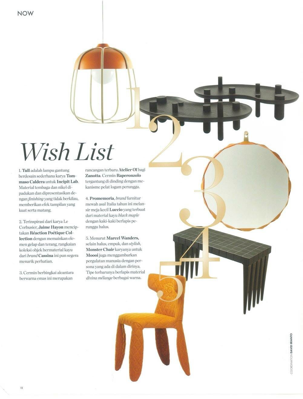 Yuni Jie “Surprising Element” was featured in ELLE Decor Indonesia November 2015. The beautiful project features MOIE items such as carpets by STEPEVI. In “360 Days of Comfort” article, VIBIA hanging light MATCH decorated the kitchen space. See inside for more of our products!