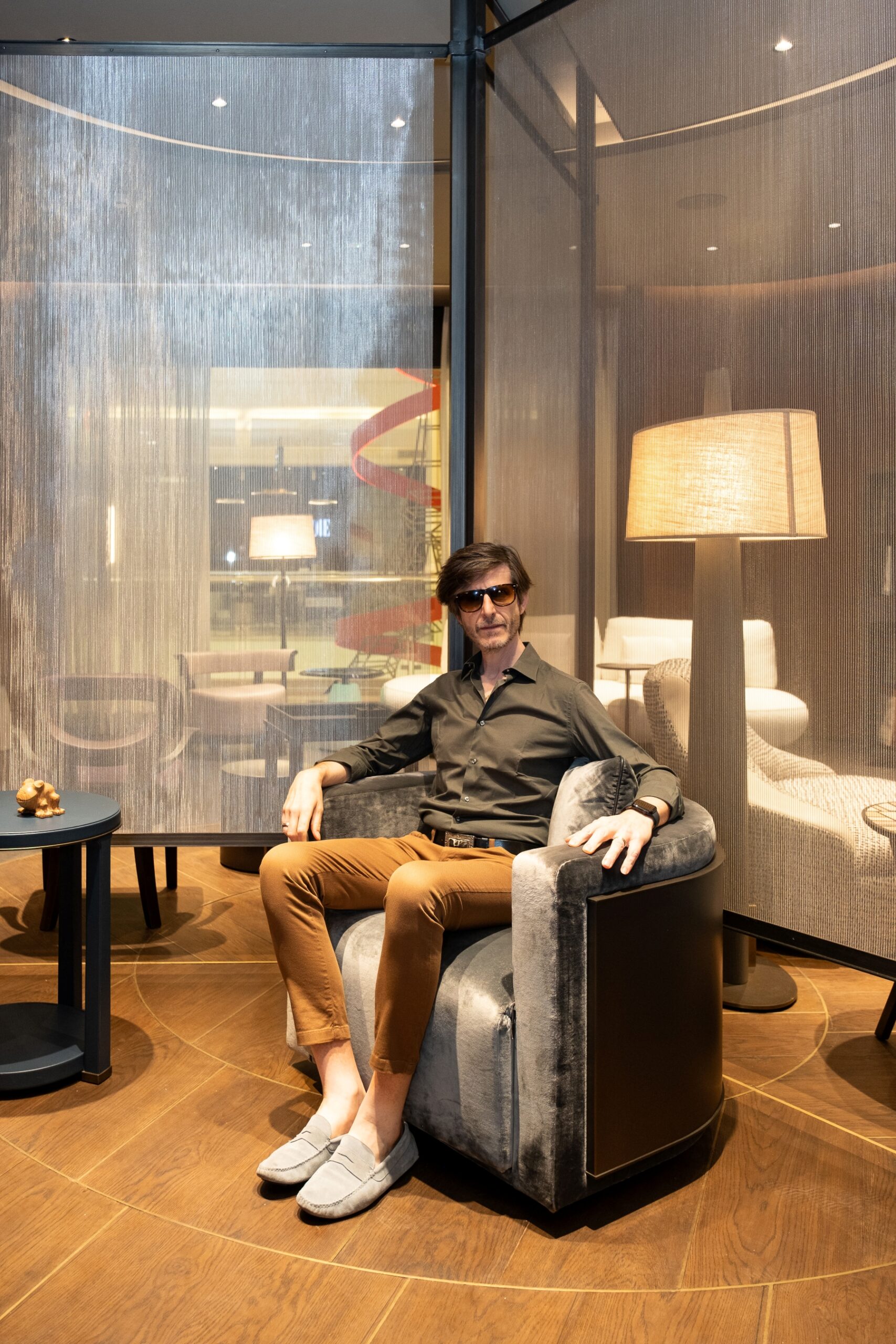 Designed in collaboration with SHS & Associates, the showroom was conceived as a spatialcanvas that reflects the character of Promemoria’s creations, expressing craftsmanship,material richness, and elegance as a unified whole. The façade introduces gentle curves anda dynamic flow articulated throughtravertine and refined metal accents, gestures thatcontinue seamlessly into the interior. A layered palette of wood veneers, stone surfaces, padded wall panels, and finely detailed finishes creates a visual rhythm through an interplayof texture and materiality, while a flexible central feature derived from the Promemoria logoanchors the space and can be reconfigured to support evolving furniture compositions.