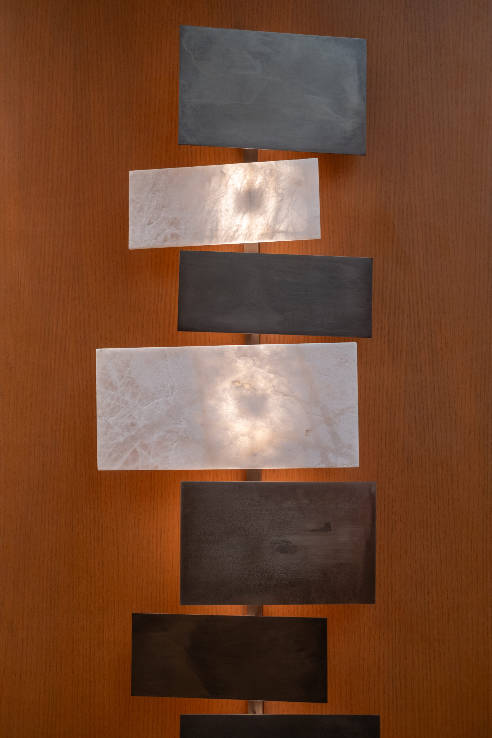 Key highlights include the Abaco wall lamp by Henge, casting dynamic light and adding sculptural elegance to the space.
