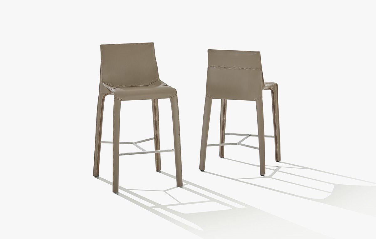 The Seattle chair collection, designed by Jean-Marie Massaud in 2015, is completed by the stool, with even more elegant proportions. Like the chairs, the stool too is distinguished by the quality of the hide covering manufacturing, with stitching and punching inspired by the British shoemaking tradition.