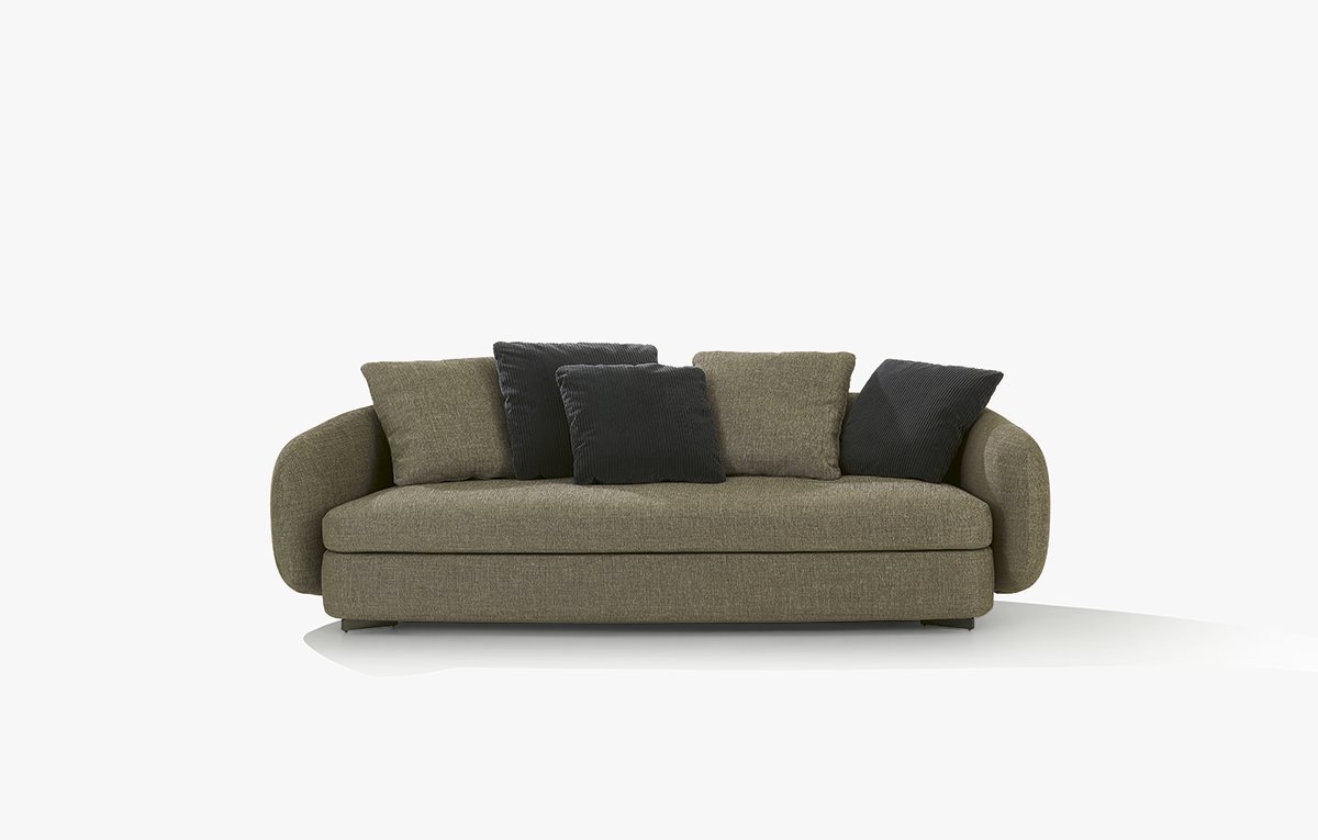 Saint-Germain is a system of sofas and upholstery elements with sinuous and sensual shapes. An enveloping and round style recurs in all the modules of the series, which features linear sofas, L-shaped configurations, or organic compositions. The covering, in fabric or leather, enhances the volumes, full and voluptuous. Designed by Jean-Marie Massaud, Saint-Germain transforms any space into a warm and familiar landscape, giving a pleasant sensation of domestic comfort.
