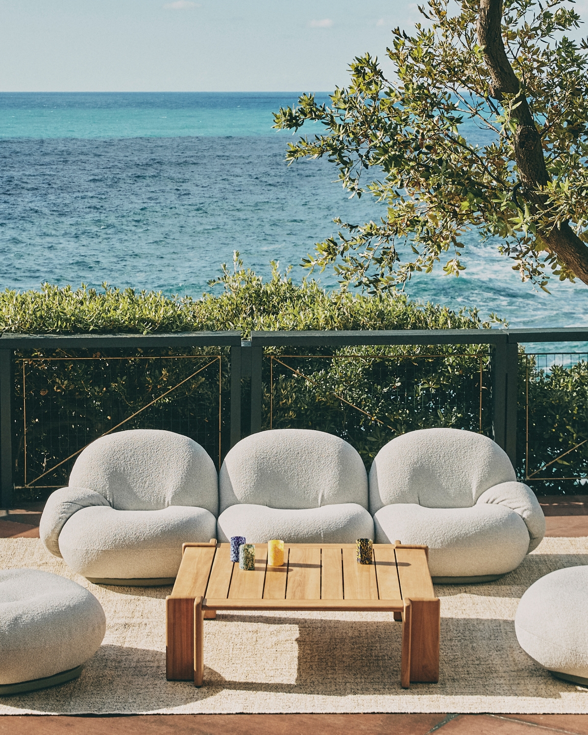 Gubi’s Pacha lounge chair, designed by the legendary Pierre Paulin, brings comfort and sculptural beauty to outdoor spaces. Known for its low-slung, cloud-like forms, the piece creates a relaxing atmosphere that feels like you’re sitting on a cushion of air, ideal for lounging on warm, sunny days by the sea.