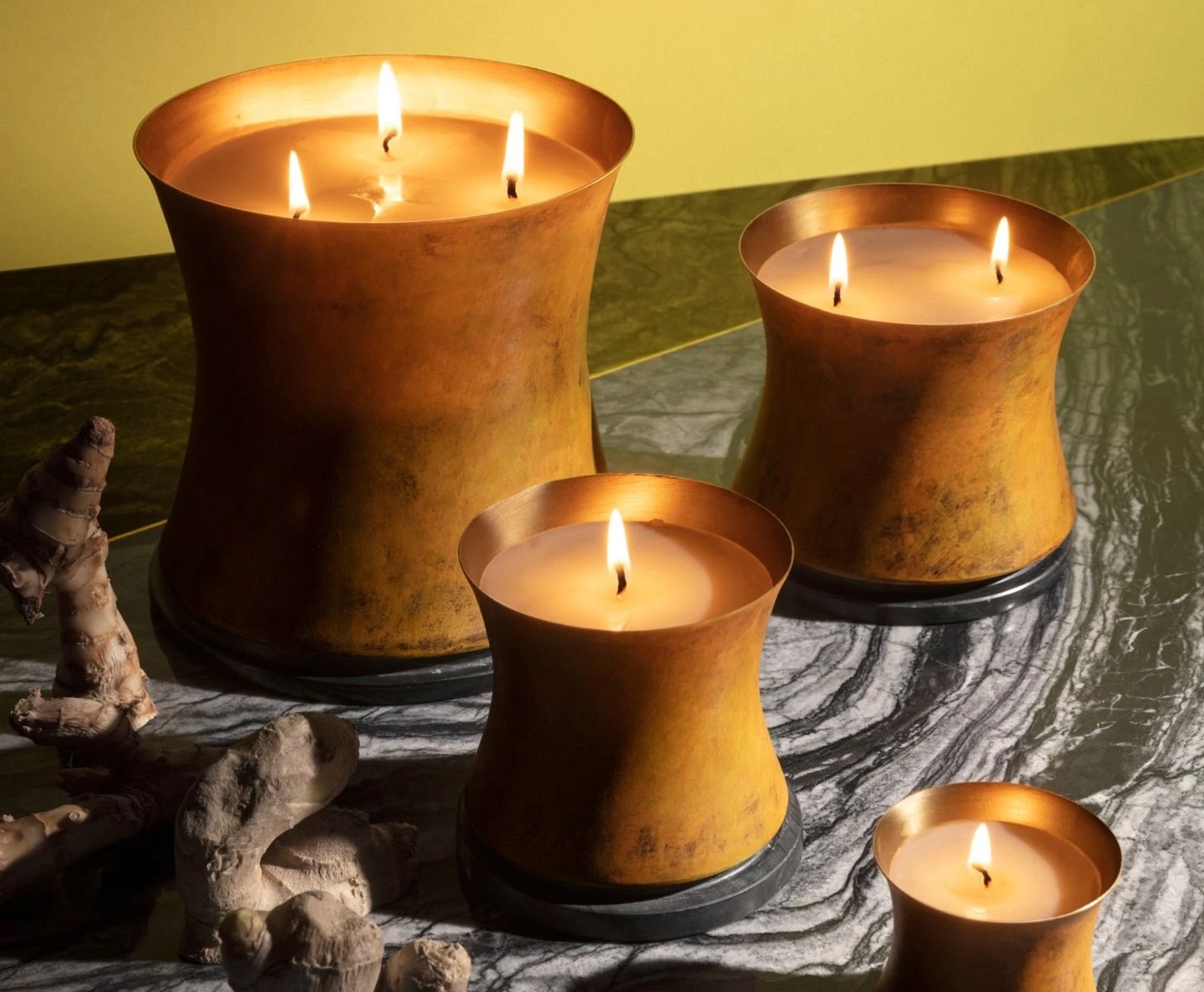 In the dark subterranean, hidden below the surface, rhizomes secretly grow and slowly develop the fresh, sharp intense fragrance of ginger. This is combined with woody Haitian cardamom to make the unique scent of Underground. Encased in a copper hand-spun vessel with a solid Banswara marble lid.