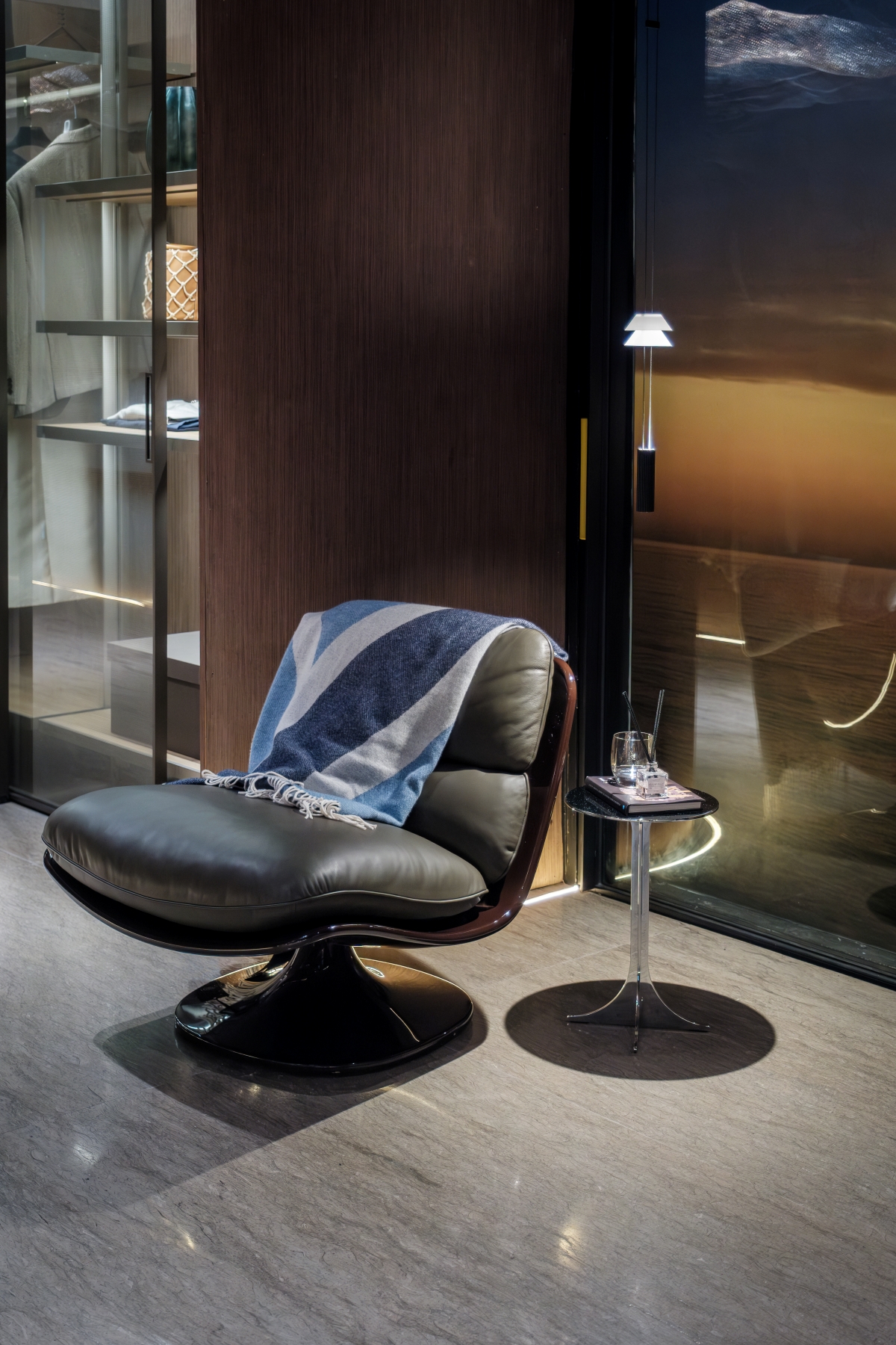 Waves become his reference point. The ocean’s motion appears powerful at first glance, then soothing as you move deeper into its rhythm. That sensation translates into gentle curves and flowing lines, giving the suite a pulse that feels like water. A space that invites the mind to settle and the senses to drift like a tide at rest.