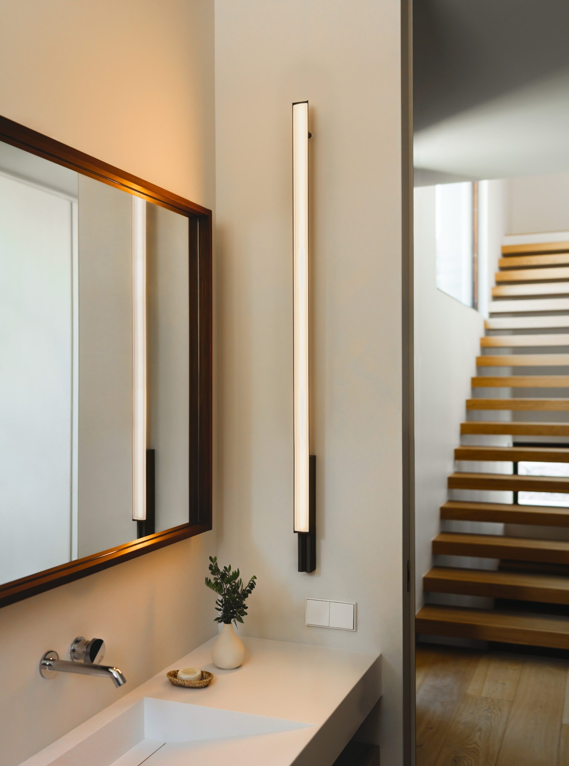 Ideal as a bathroom mirror light fixture, Spa can be positioned at an angle to send diffuse, ambience lighting in the desired direction.