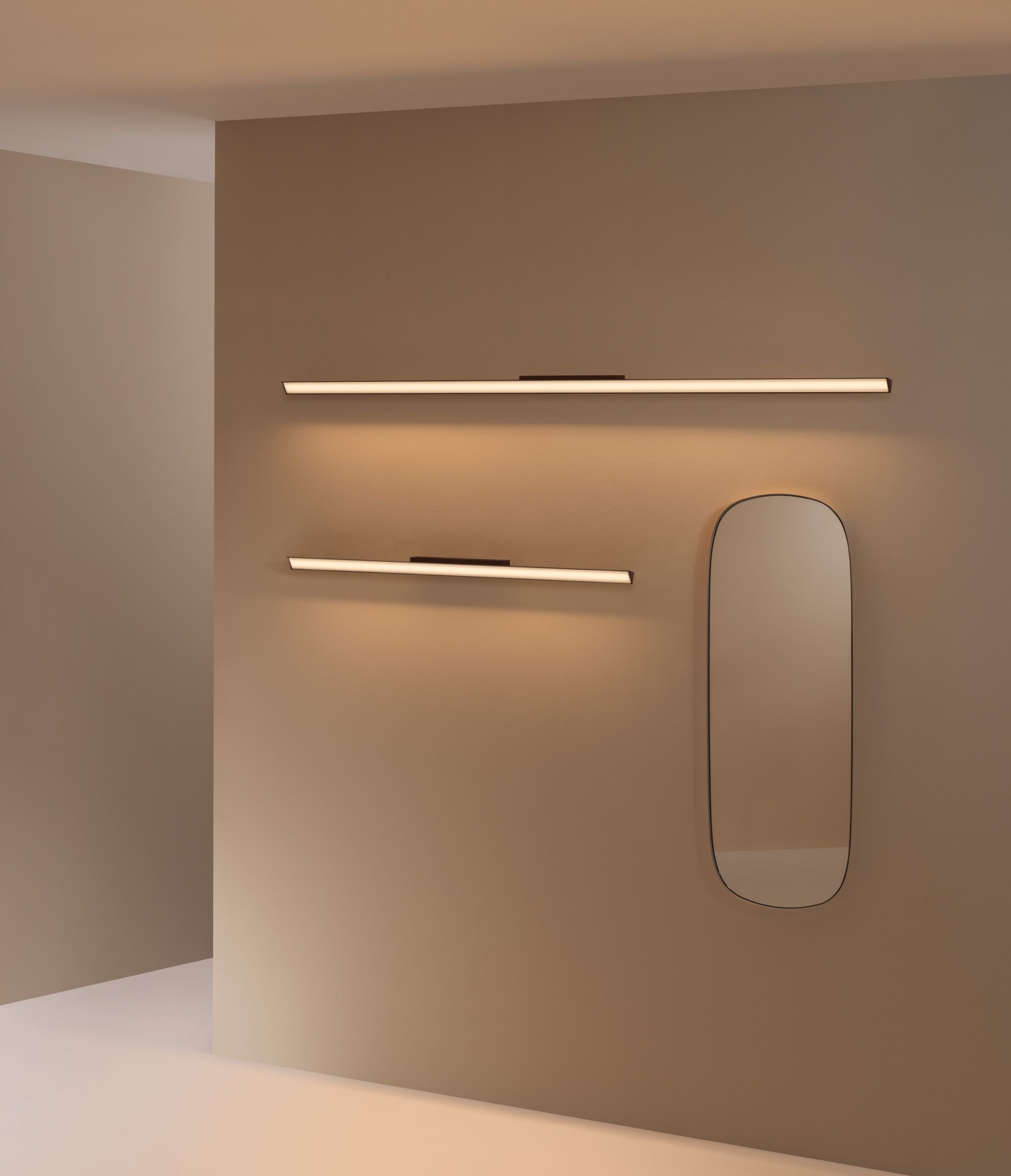 Minimalist and refined in form, Spa is an adaptable system of linear LEDs that allows for limitless compositional freedom to create a broad range of atmospheres, from intimate corners for personal wellbeing to functional spaces designed for general wellness. Particularly apt as a vanity light, it can be positioned at an angle to send diffused light in the desired direction. Due to the subtle fluting effect of the polycarbonate, dense light tapers out from the centre towards the edges of the strip, casting an intense light without glare. The smoothness of its materiality along with the linearity of its grooves contrasts with the matte texture of the aluminium casing, offered in a range of finishings to suit diverse interior aesthetics.