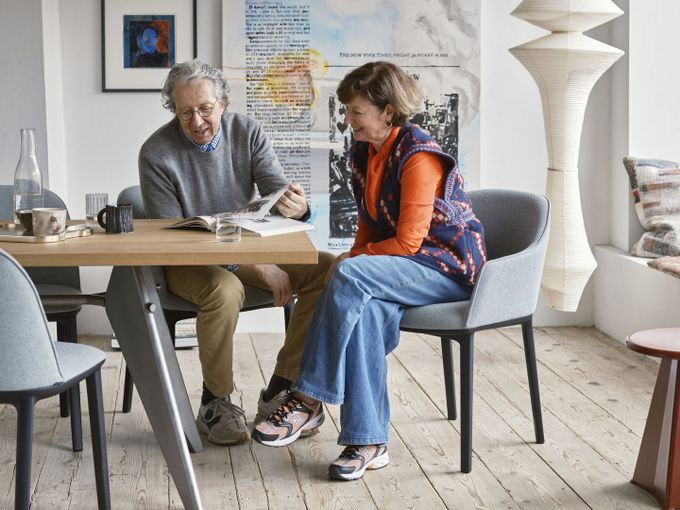 “I have no doubt that the objects will survive me, which is a nice feeling. As a couple, we share the same attitude toward aesthetics. The evolution of our common taste is the product of an ongoing discussion between the two of us. We fell in love with Prouvé and Perriand for different reasons. Prouvé for his technicality, his engineering, Perriand for her materiality, her use of dark wood. When you learn about their careers and how they went through life, it gives you a better understanding of their creations.”