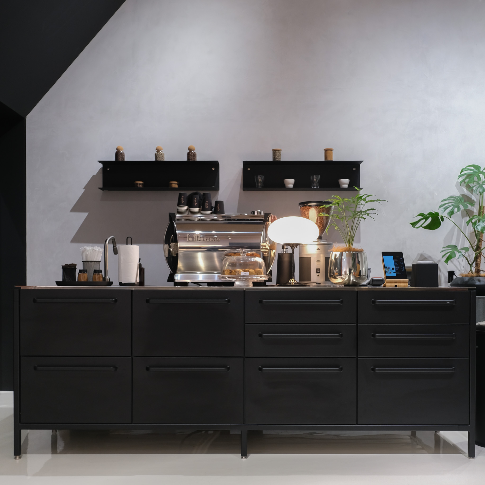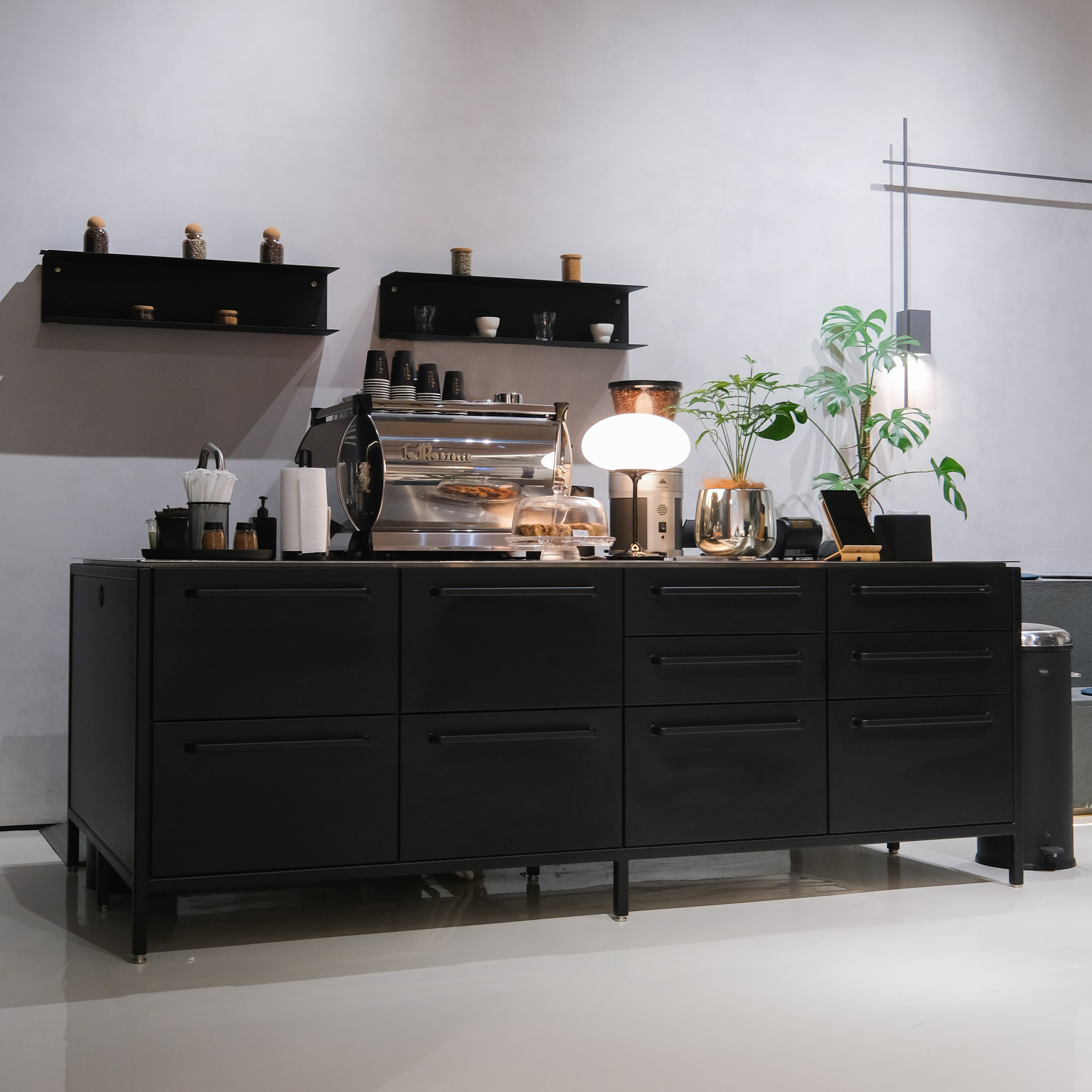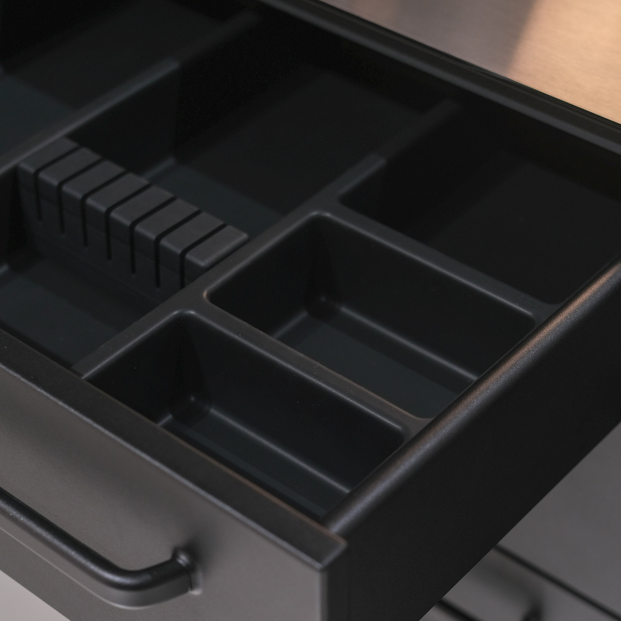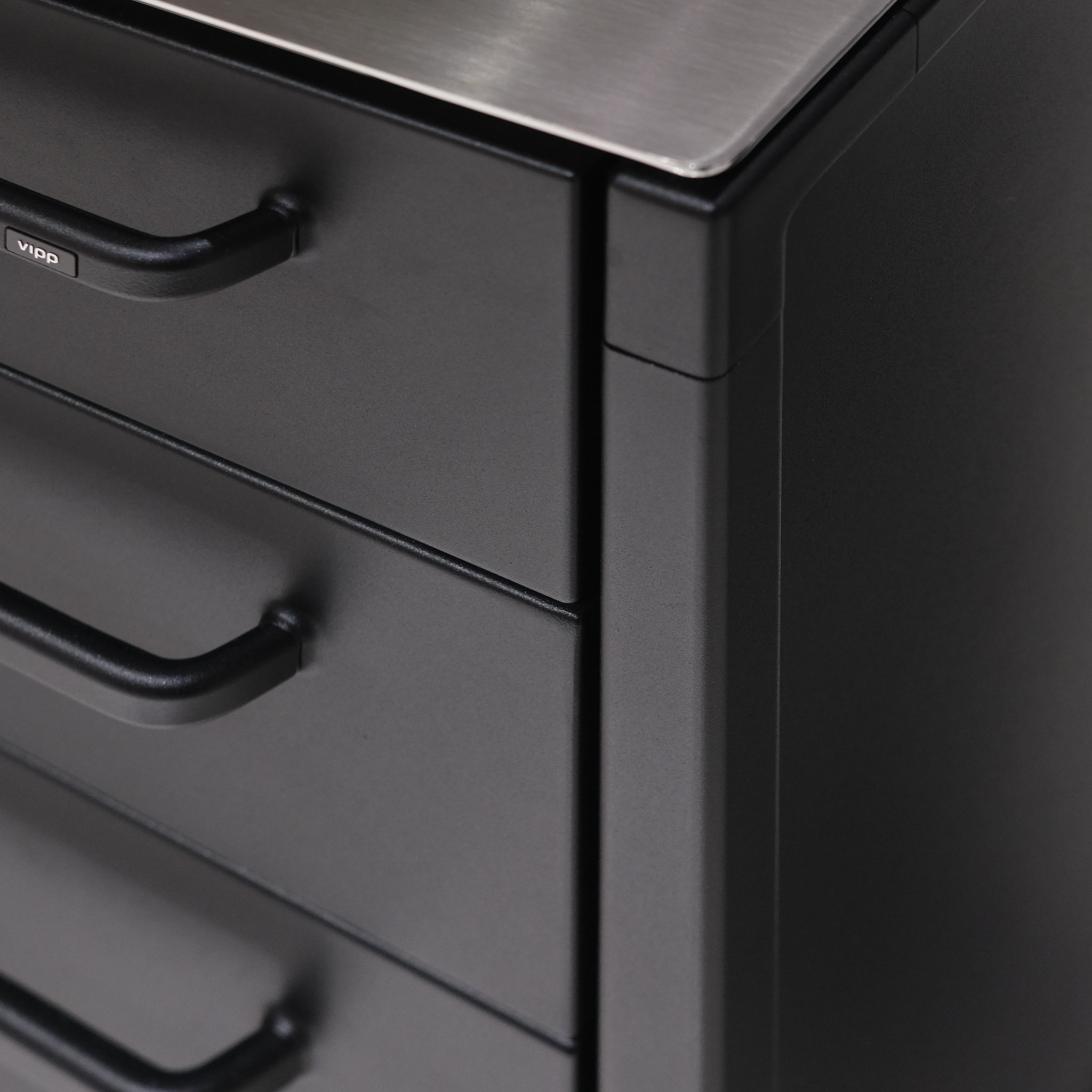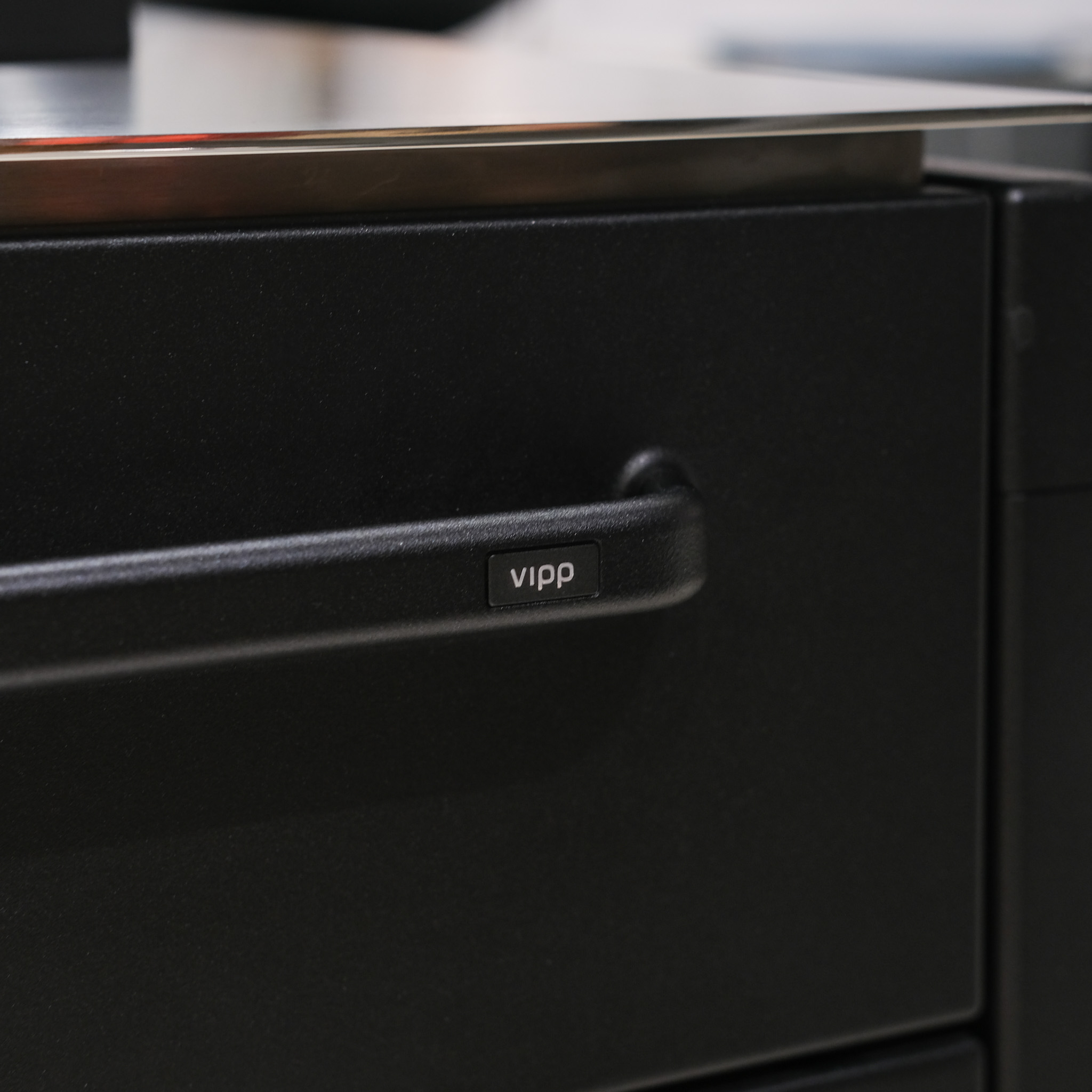 Details: 90004NEW, w/ Sink, w/ 10 Drawers, Low Unit Cabinet With Fixed Shelf, Power Outlet Type G – 230 V / 3,15 or 5 Amp-Blck, Vipp17 Pedal Bin, Cutlery Insert