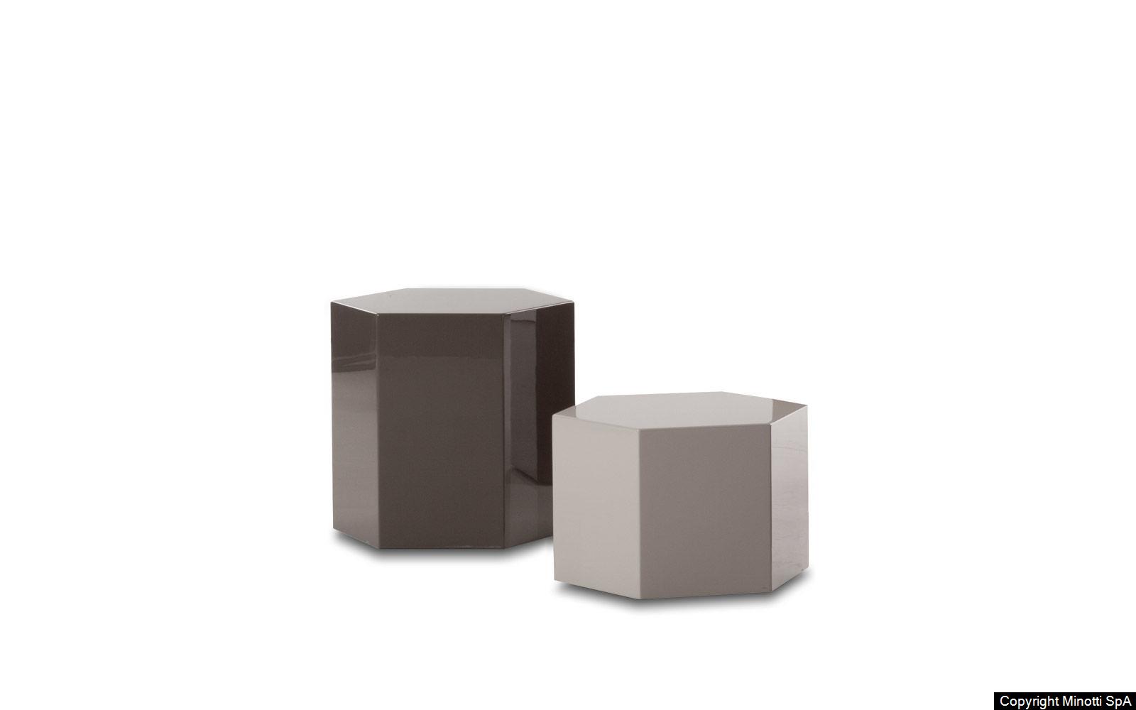 The Aeron “Outdoor” accent tables are available in several sizes, making it possible to create a unique interplay of shapes and sizes. Thanks to their hexagonal prism shape, they forge interesting connections with other types of coffee tables in the collection, especially with the Brisley “Outdoor” accent table.