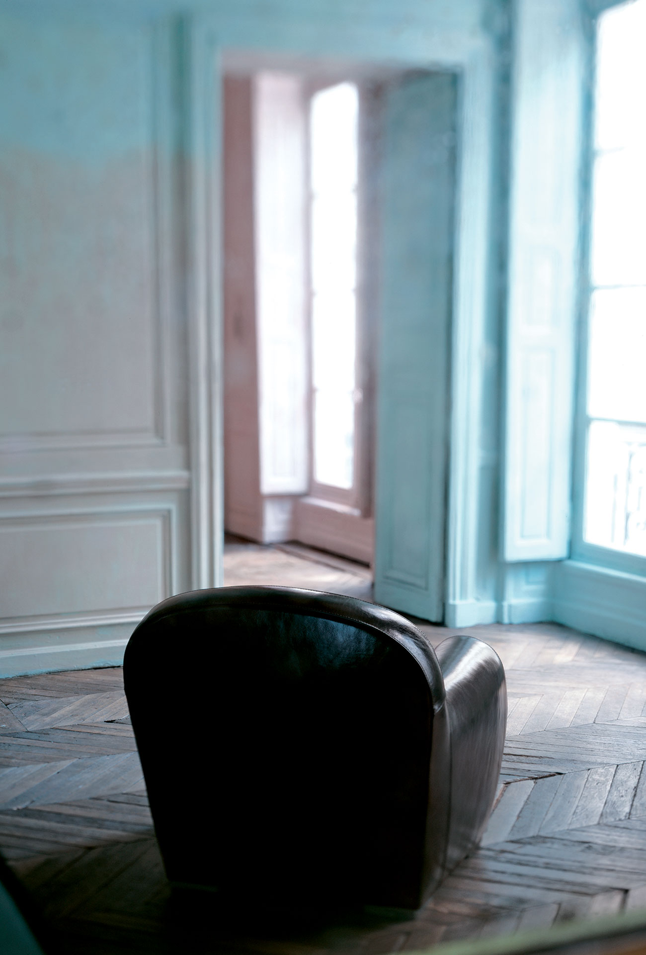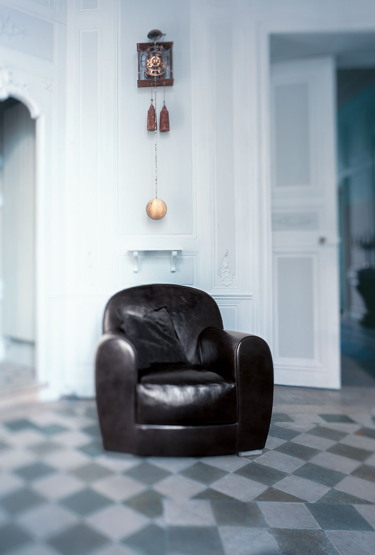 Frame in double-panelled fir and poplar. Feet in brushed unfinished metal, antirust protection with matte varnish. Differentiated density polyurethane foam filling. Springing with woven elastic straps in covered rubber. Seat cushions in washed and sterilized goose down with pads in differentiated density polyurethane foam.