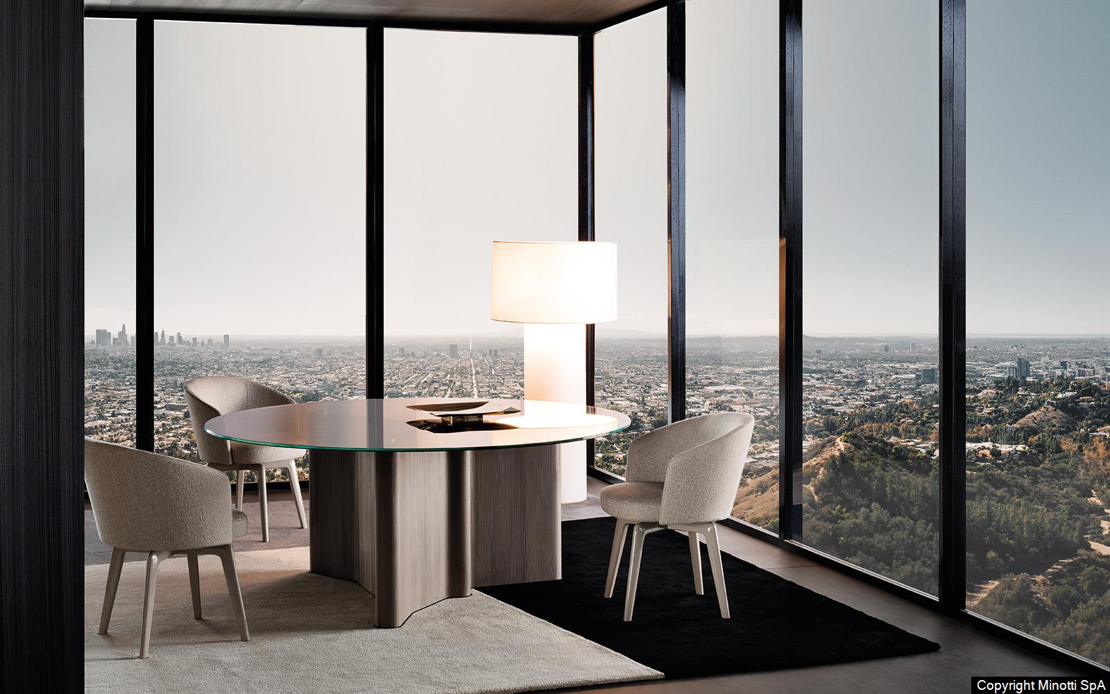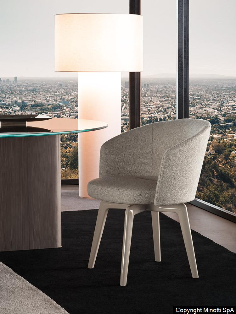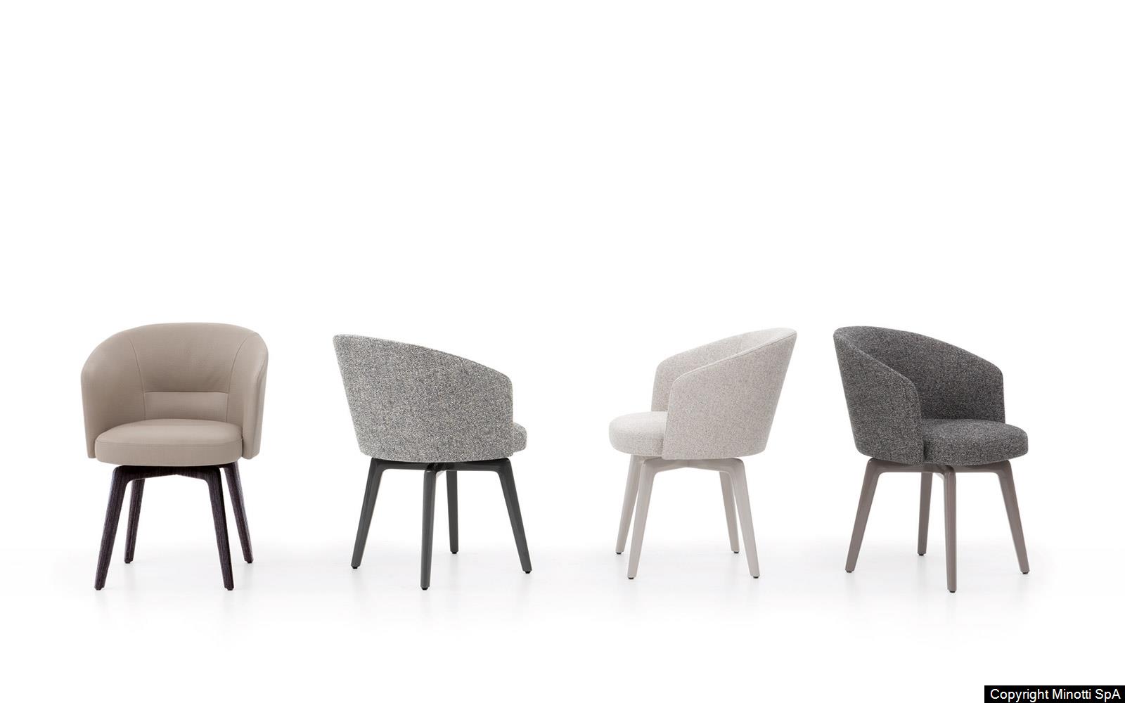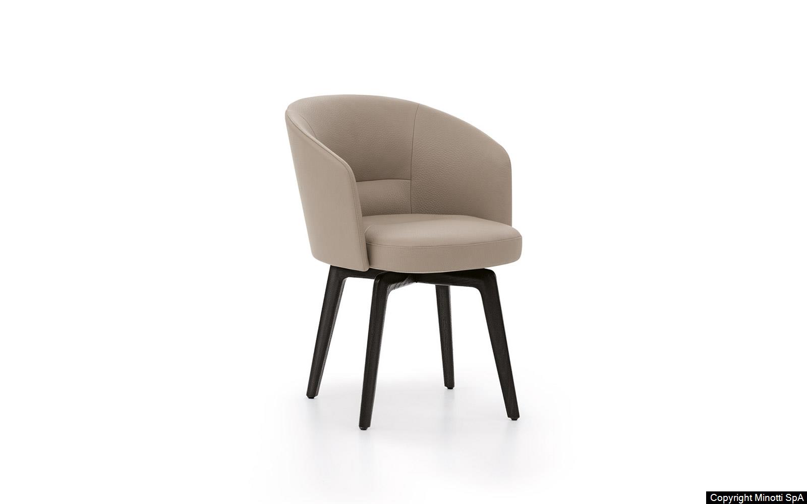 The padded structure is made of a cold-formed foam shell covered in soft padding and rests on a base available in two finishes: solid ash with open-pore Chestnut or Moka stain and solid beech with glossy lacquer finish in Sand, Granite or Mud. The option to choose the base, and the many different upholstery selections available for the seat, make Amélie an especially versatile chair that can lend understated elegance to any type of decor. The Amélie little armchair comes in versions with fixed or swivel base and can be paired with all the tables in the collection.