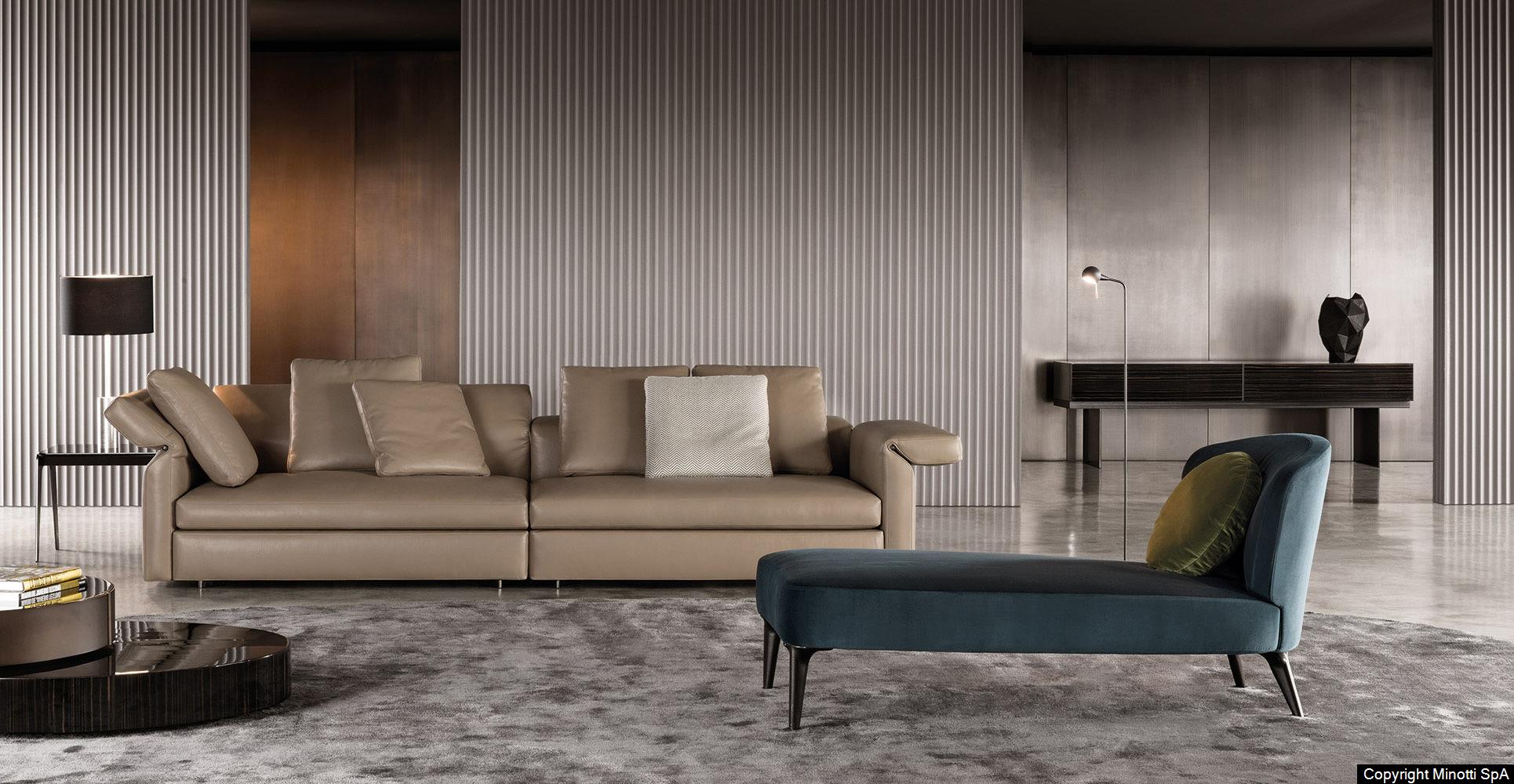 Inspiration for the sofa, ottoman and Aston daybed is unabashedly retro; what they have in common are eloquent lines, a more conservative scale and the kind of painstaking construction that expresses time-tested artisan craftsmanship.
