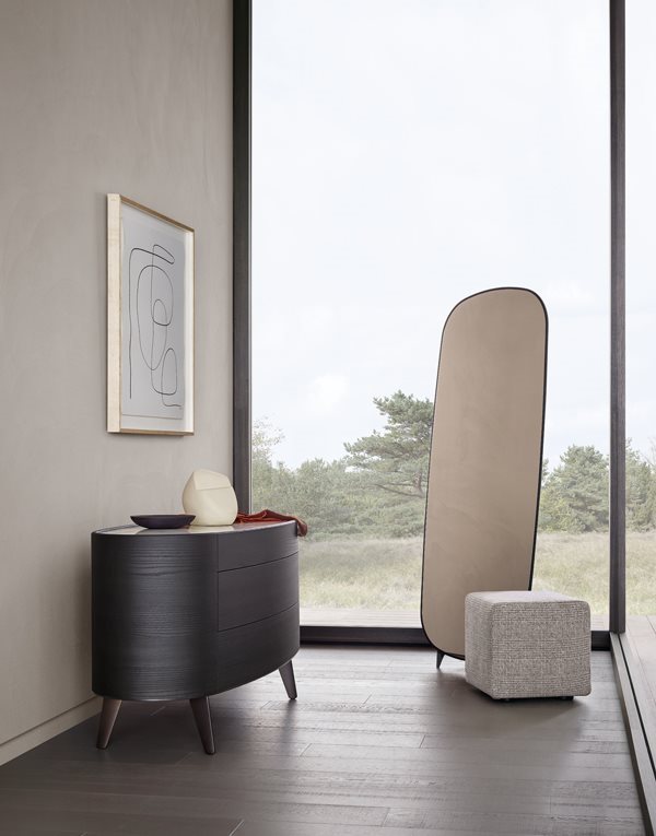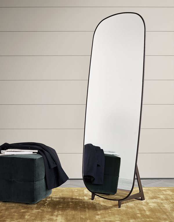 A mirror with a minimal design, designed by Emmanuel Gallina. Available in two versions, to hang on the wall or on the floor.