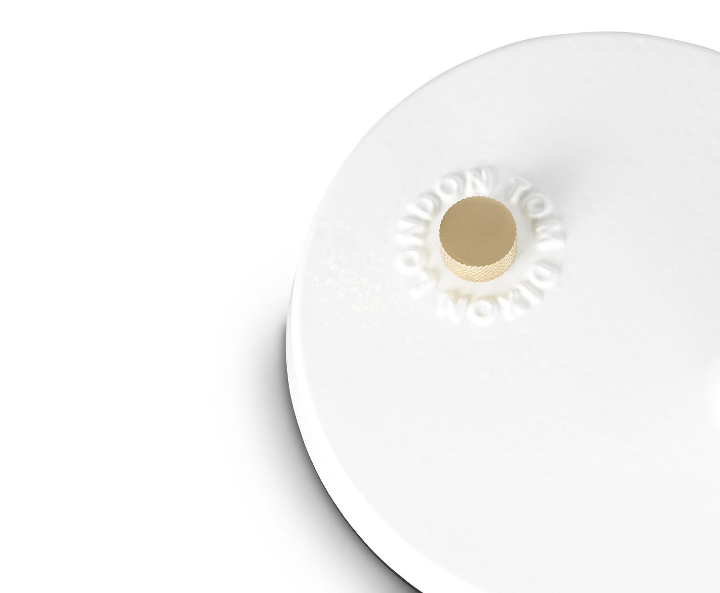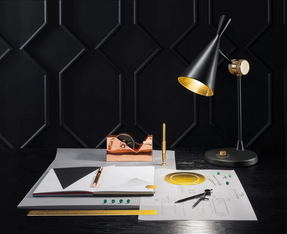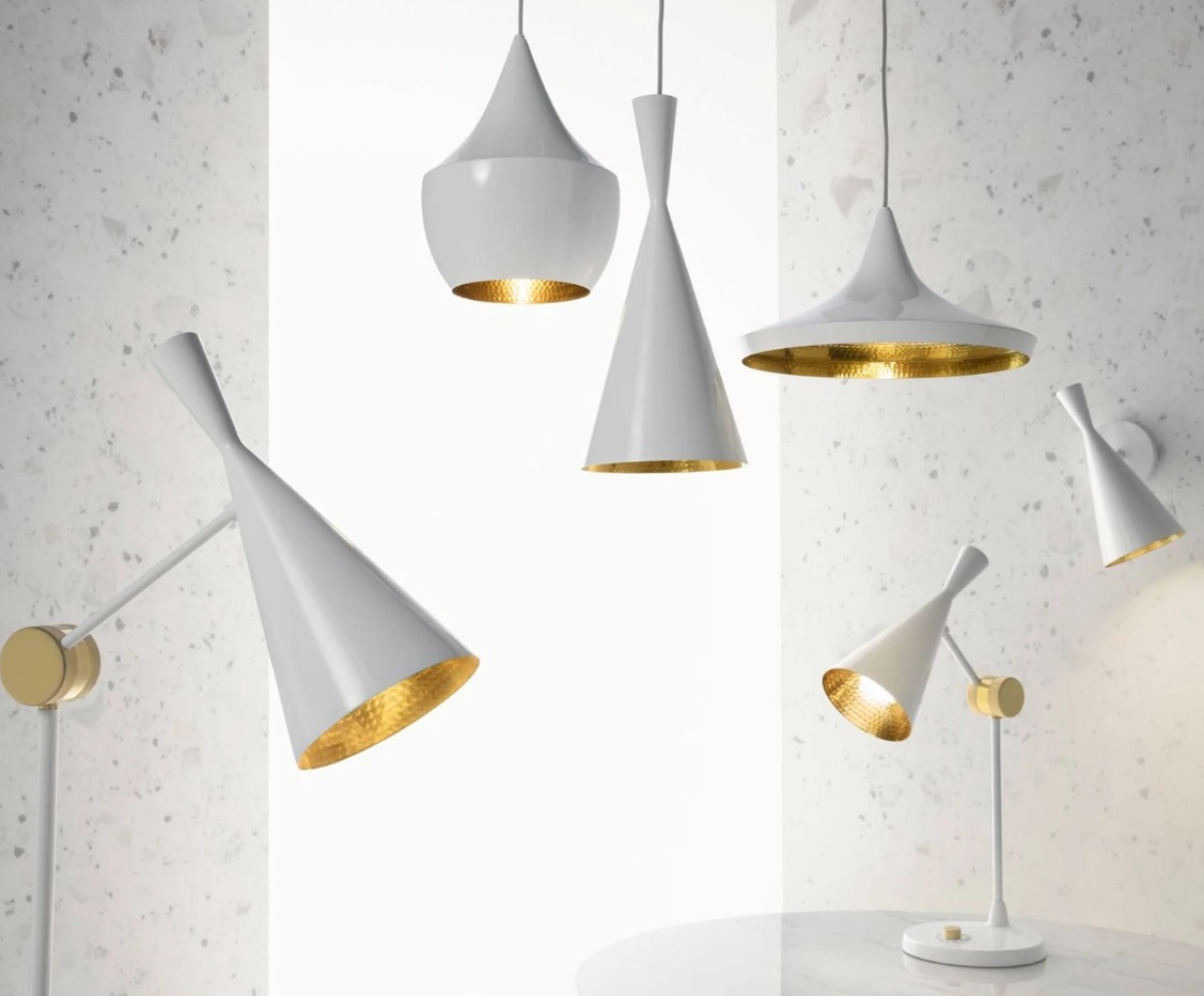 A variation on the famous original Beat Light, this table standing version on a slender articulated arm can be adjusted to direct the light beam. Solid brass componentry and iron sand cast bases create an iconic footprint for any interior. Available in black, brass and white.