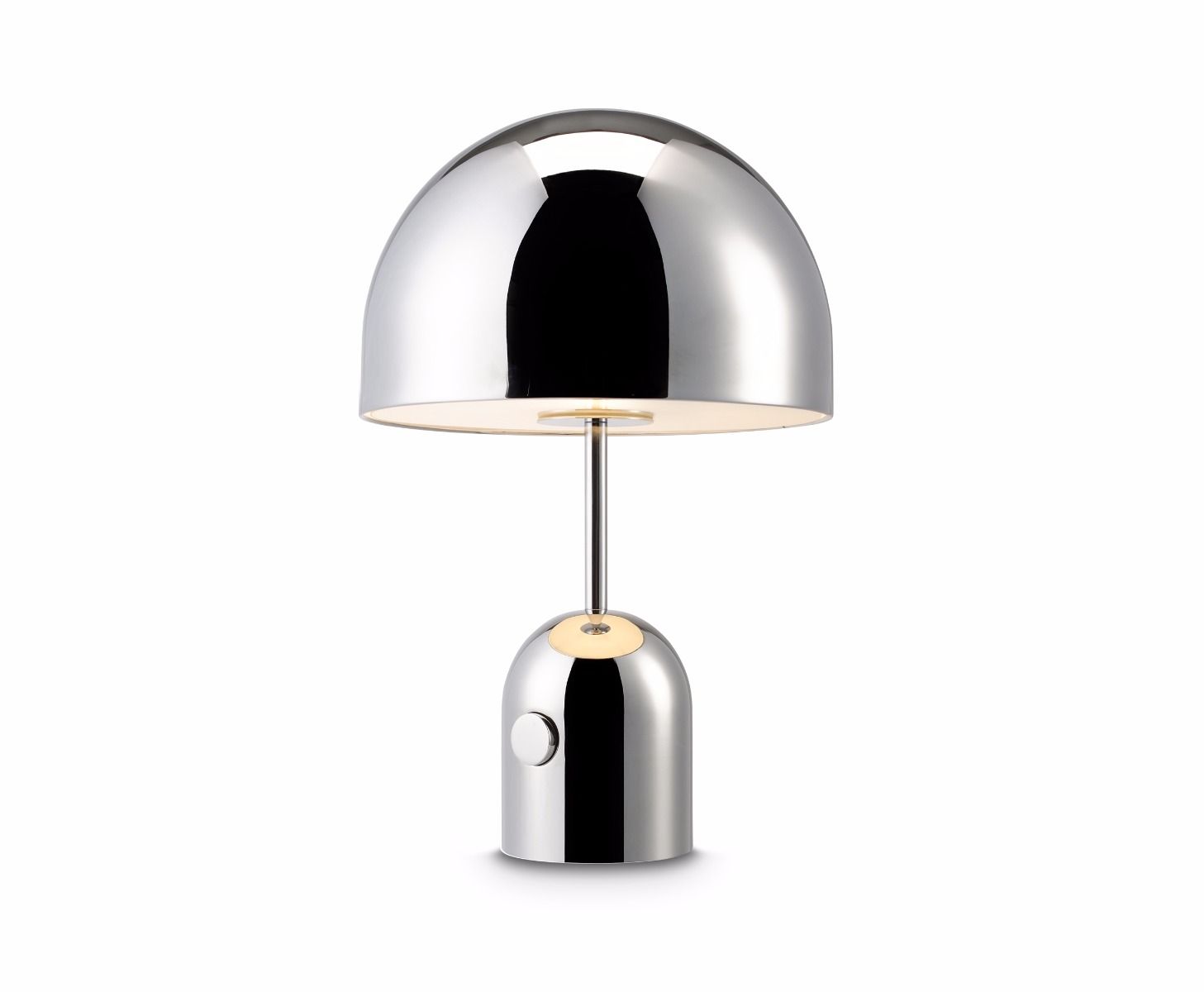 Bell is an exercise in reductionism, its polished surface reflecting the characteristics and the colours of its surroundings. The table lamps are fitted with an integrated, smooth dimmer and have a weighted base for added stability.