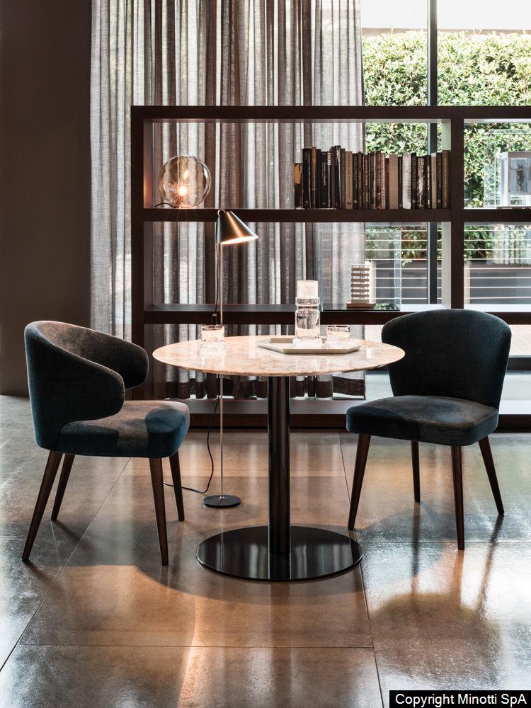 The Bellagio “Bistrot”, with the inherent lightness of design and purity of line that characterize the entire Bellagio collection, is expressed in a new version that multiplies its possible uses. Bellagio “Bistrot” comes with a glossy painted metal frame in Pewter color and 90 cm diameter top in Calacatta marble.