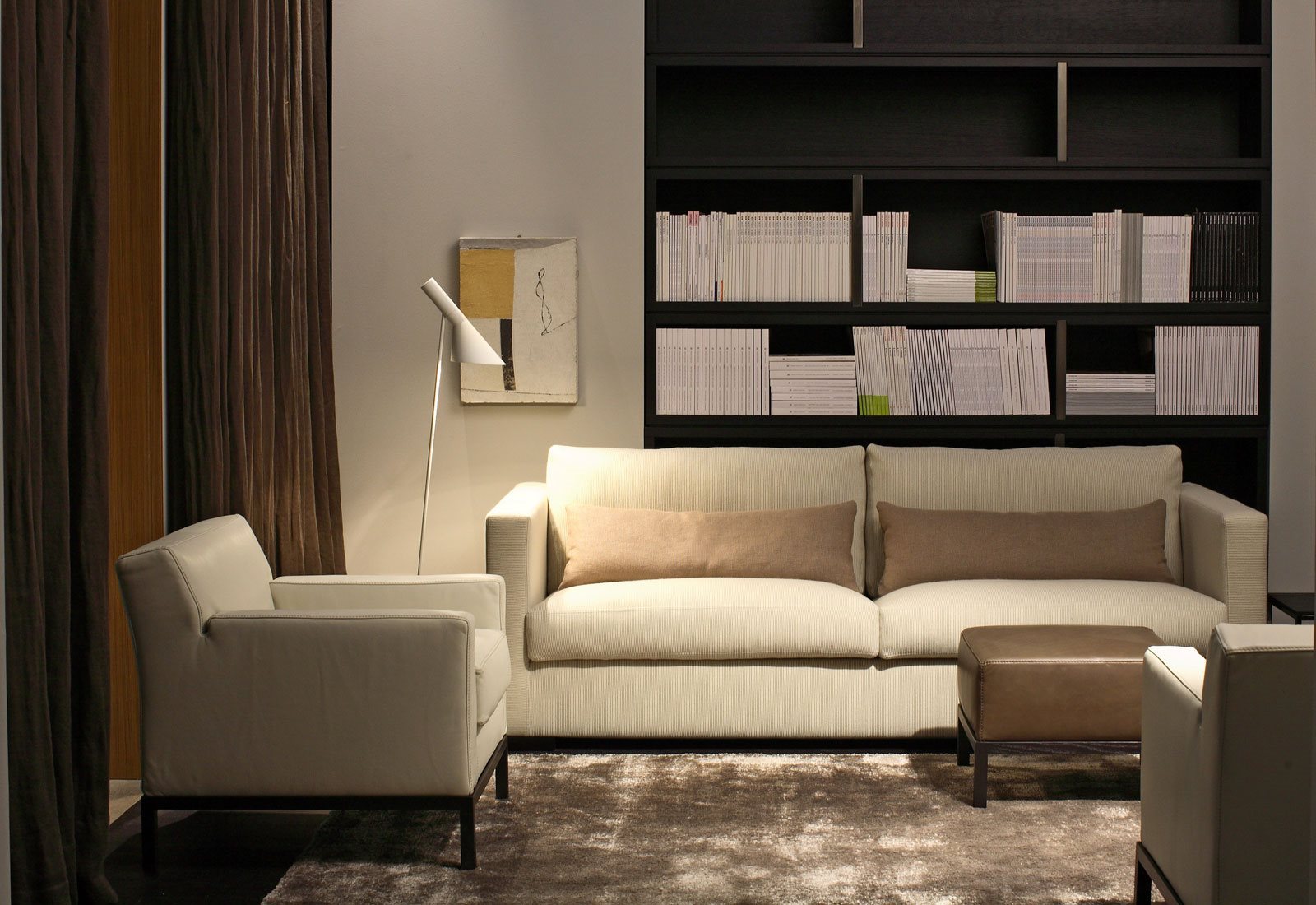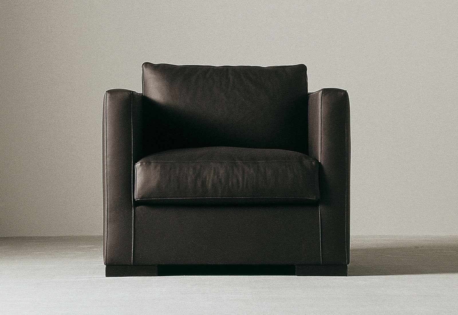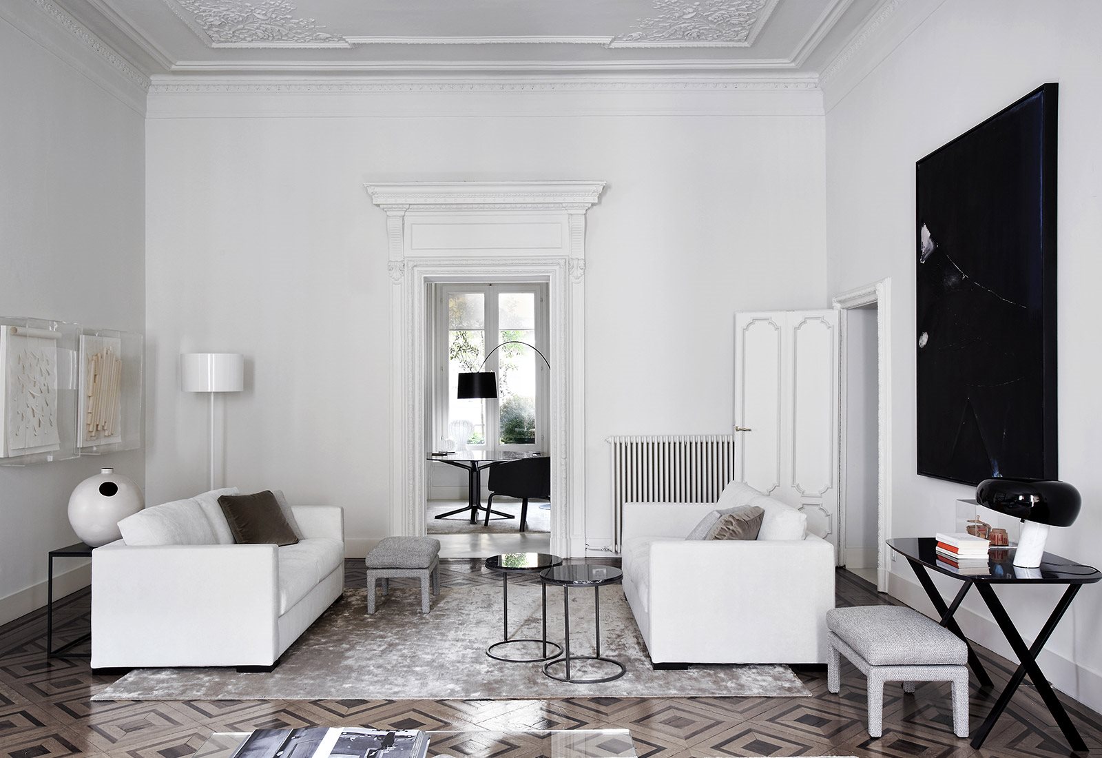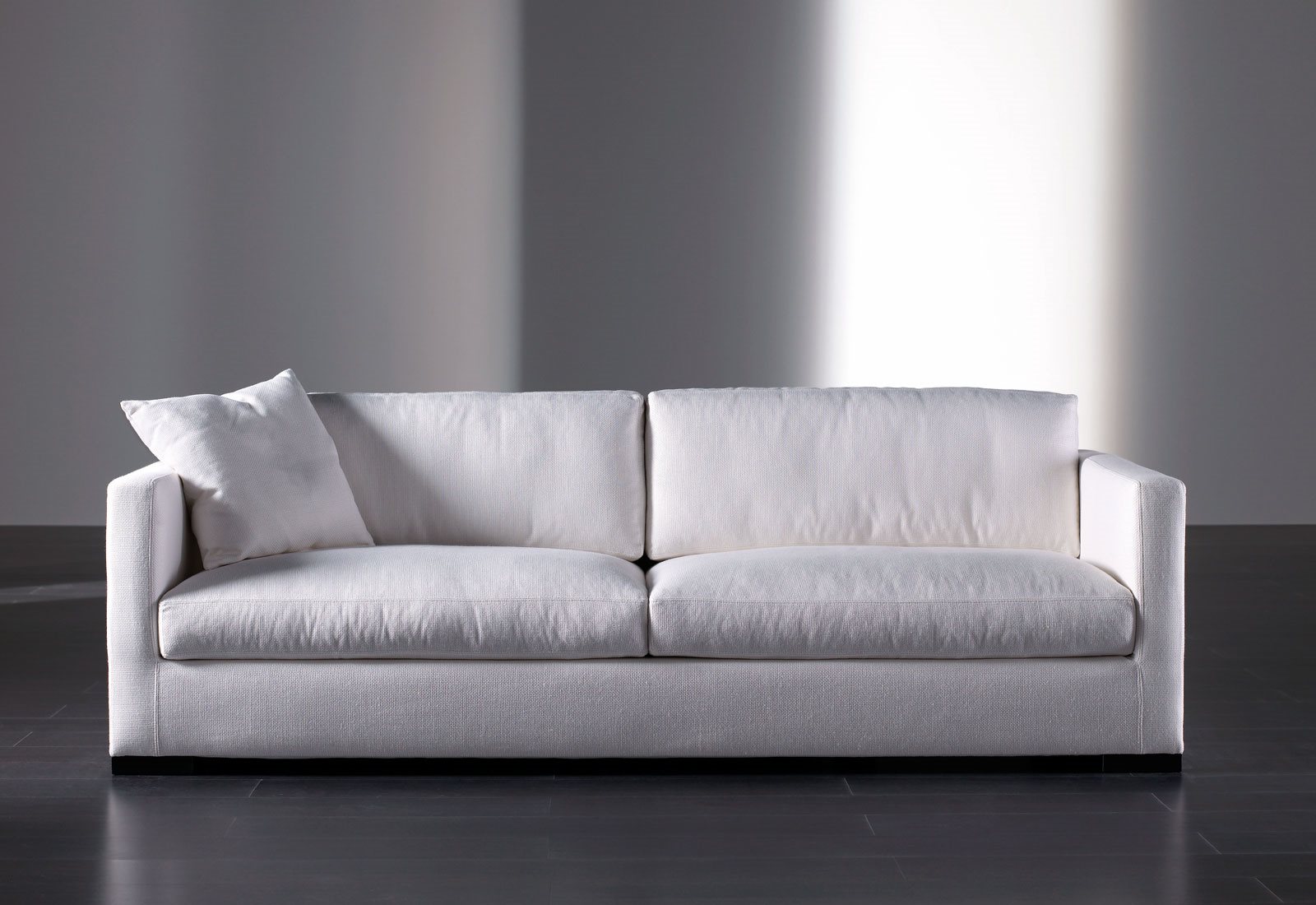 Gently square shapes for a Meridiani evergreen, the seating depth of which, intentionally reduced, makes it perfect for conversation. This line includes modular units, chaise longue, armchairs in different sizes and one sofa bed, all of them may be customized in different ways.