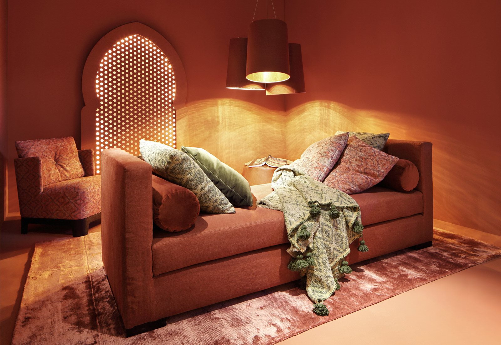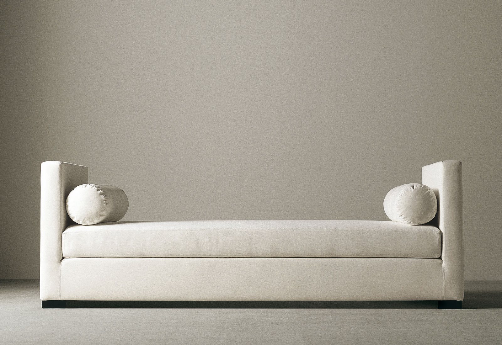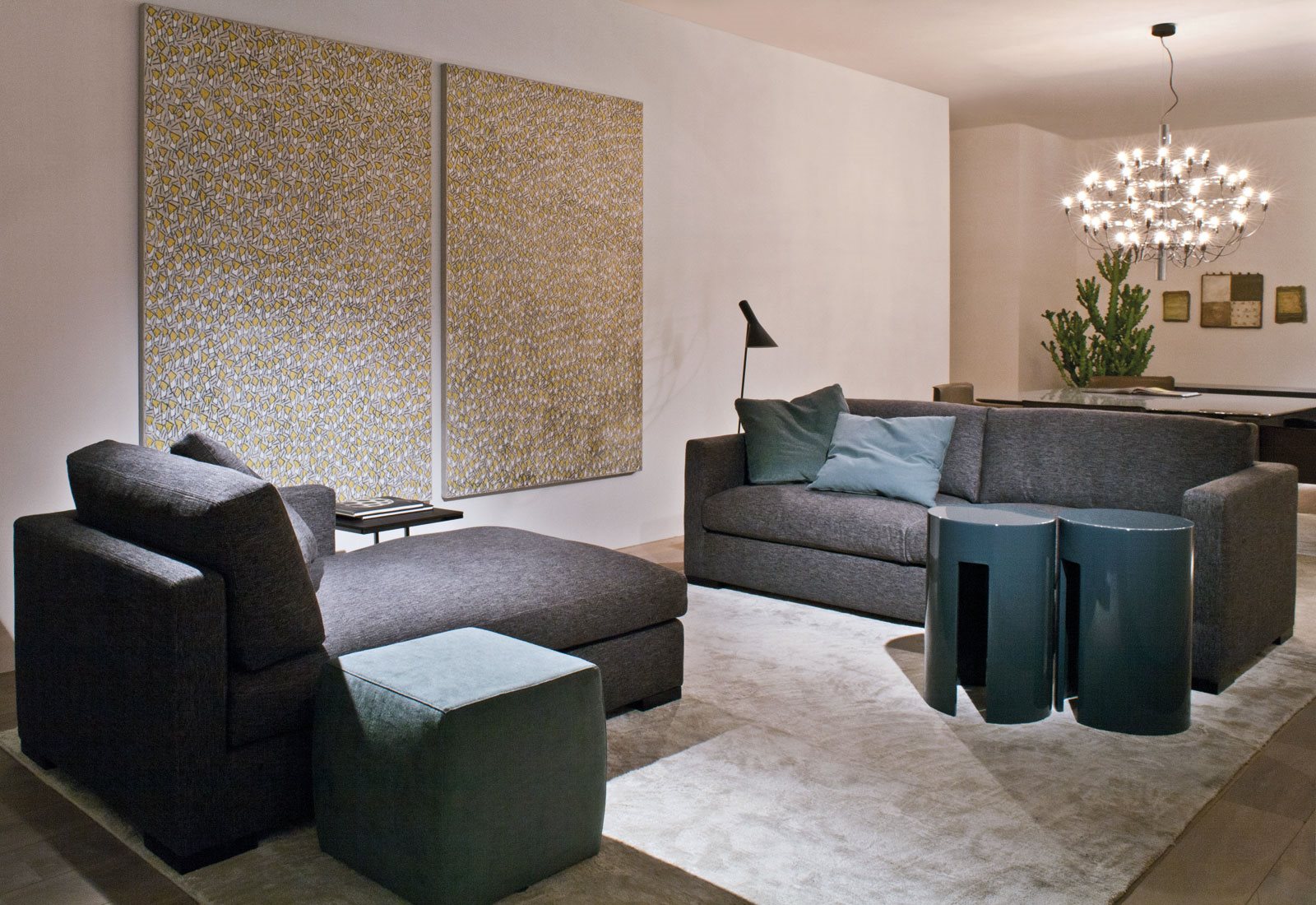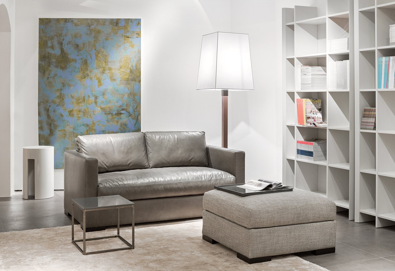 Gently square shapes for a Meridiani evergreen, the seating depth of which, intentionally reduced, makes it perfect for conversation. This line includes modular units, chaise longue, armchairs in different sizes and one sofa bed, all of them may be customized in different ways.