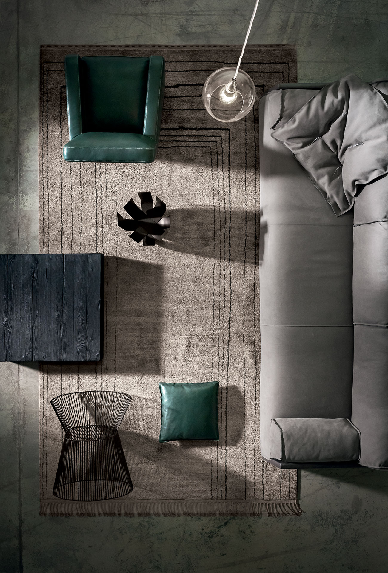 For the standard maintenance of rugs, vacuum regularly with rotating brushes to remove dust and other residues. To remove stains use a suitable professional non-powder detergent, without applying it directly on the stain, but rather in small quantities on a cloth. For stains on wool rugs use special pH-neutral products, taking care to remove any residue. The area concerned should then be dried as much as possible with a clean cloth. To wash it is advisable to consult a specialist dry cleaner.