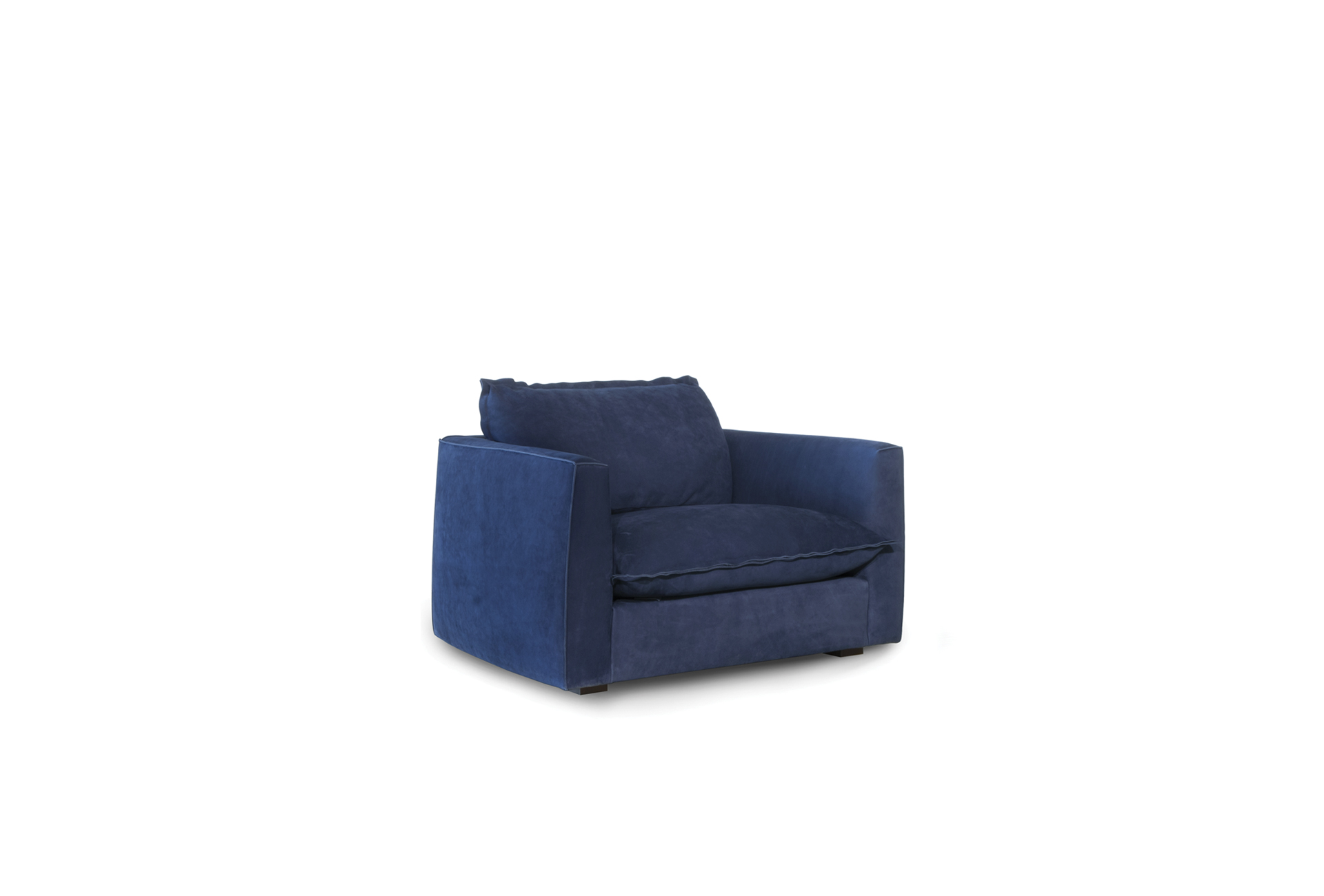 Double-panelled fir and poplar frame. Feet in walnut-stained beech. Differentiated density polyurethane foam padding. Springing with woven elastic straps of covered rubber. Seat and back cushions in washed and sterilized goose down with differentiated density polyurethane foam insert. Leather upholstery with sharp edge stitching. Available in all soft leathers.
