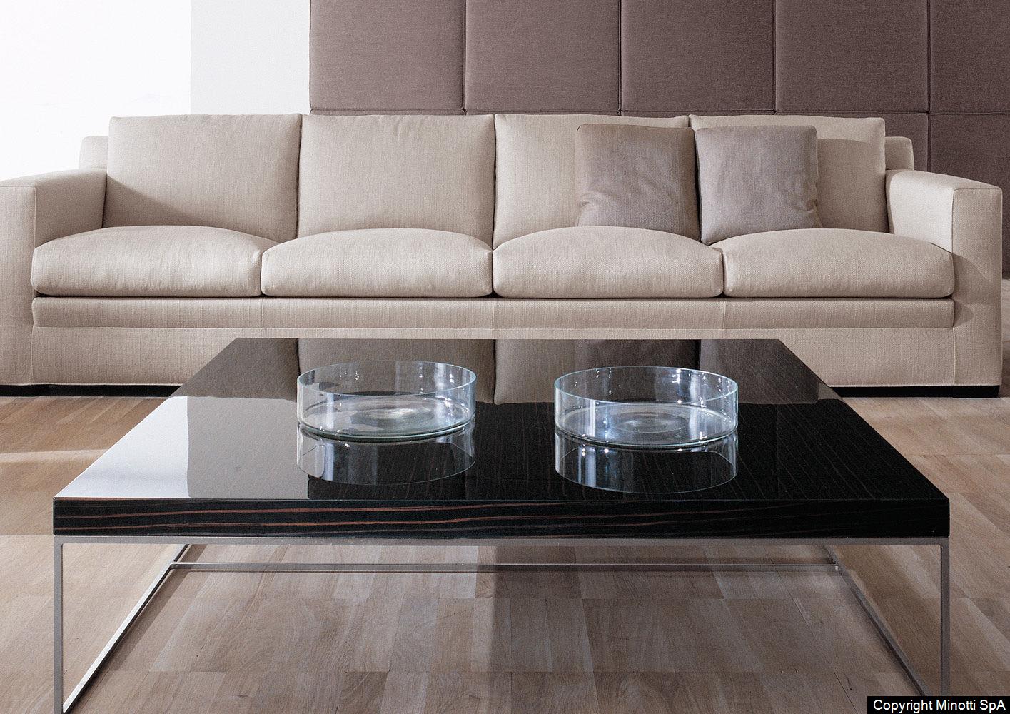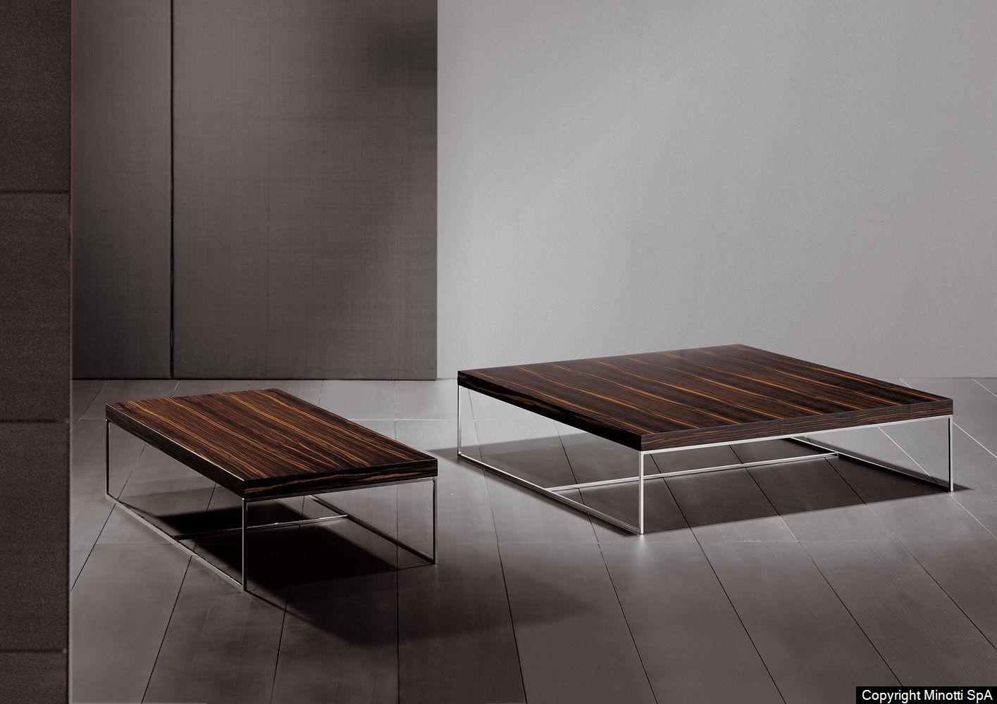 A large family: a lowcoffee table and a high one, a rectangle and a square; an oversized version has also been developed; a sort of new side table designed for flexible use. Several tops are available, all sharing the same fine quality: Marquina and Afyon black marble, ebony and oak. The thin bases, clear-cut geometry and poetic simplicity are the common threads throughout the range.
