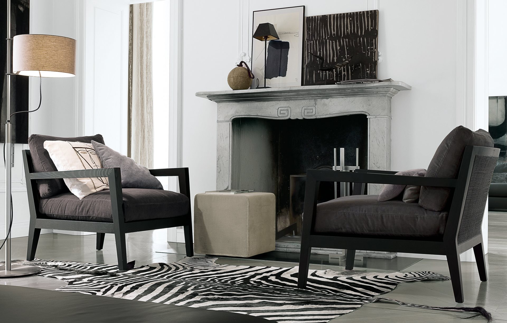 A new interpretation of the deep seating armchair, between formal references and essential design. Very thick cushions underline the idea of top comfort and of cosiness.