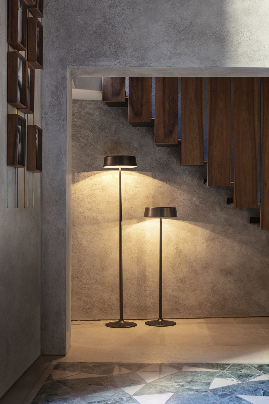 An elegant reading lamp which spreads a soft light through its reflecting base. The different finishings, from glossy white to gold, allow to interpret China in a way that is always different, according to the context.