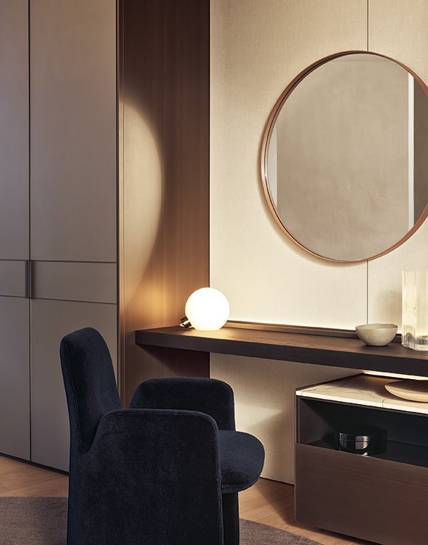 Where the geometric perfection of the circle meets the elegance of the frame in hide: Circle is conceived as a wall mirror which furnishes any home environment with its simplicity.