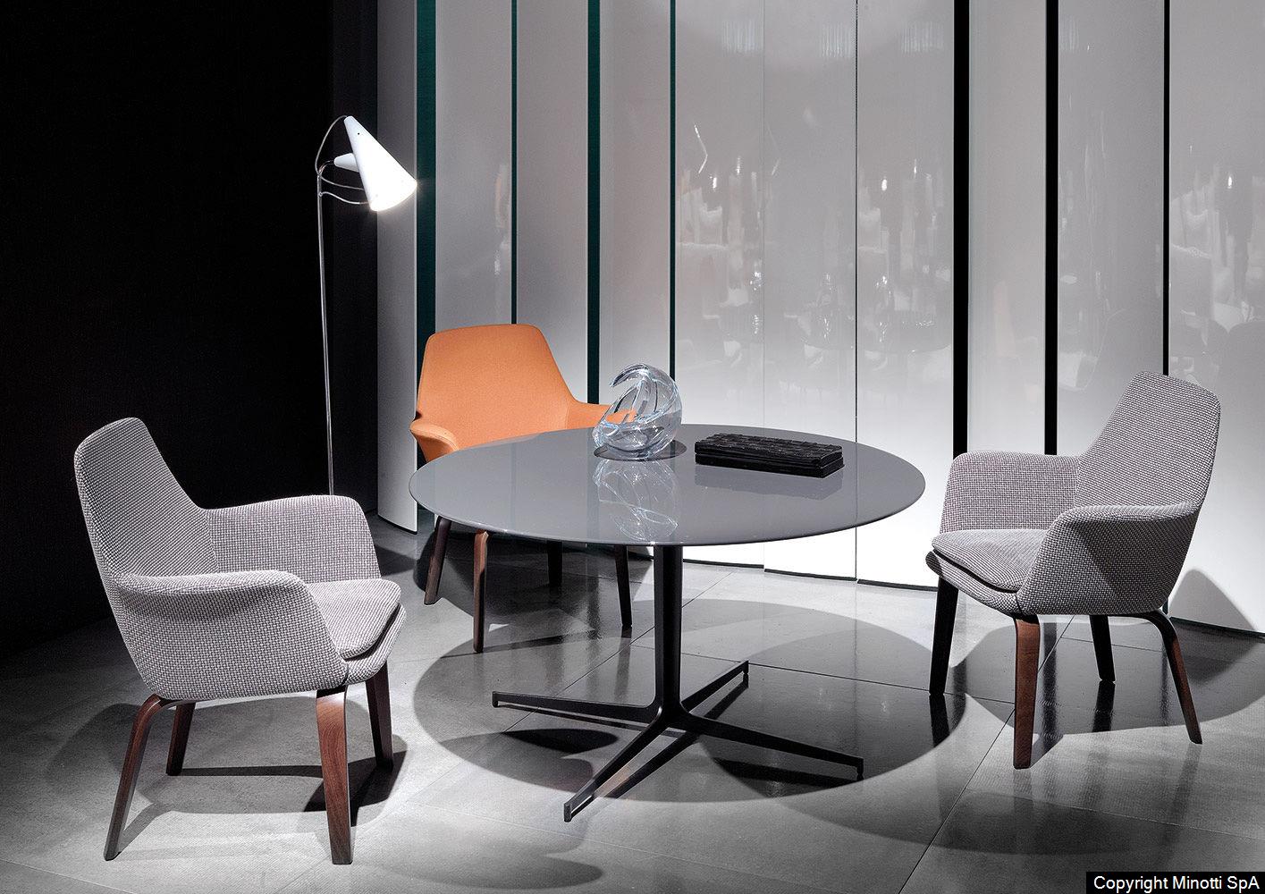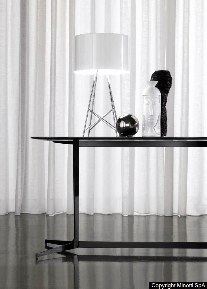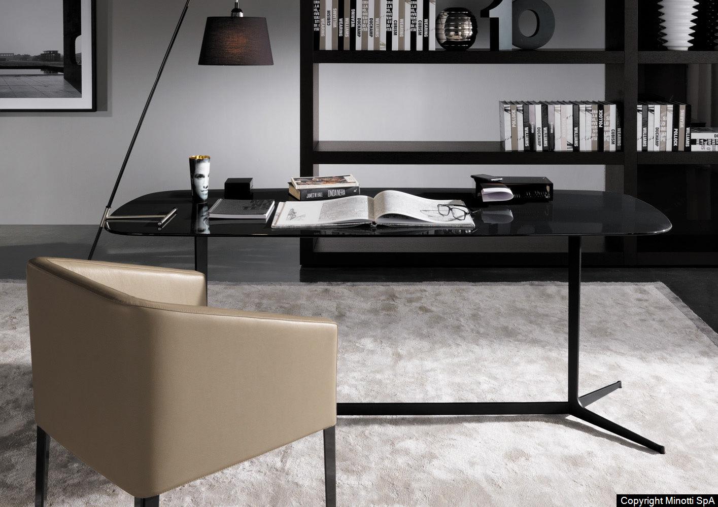 A writing desk and a lounge table featur-ing simple, contemporary design that can easily be paired with any of the pieces in the Minotti collection.