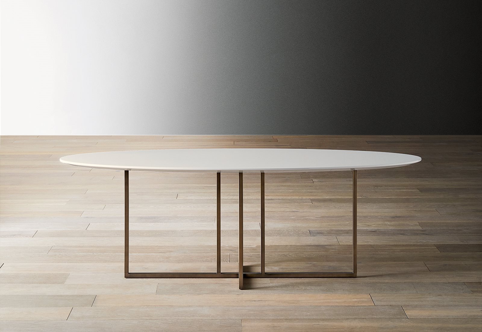Console with an oval or ‘biscuit’ top available in various finishes.