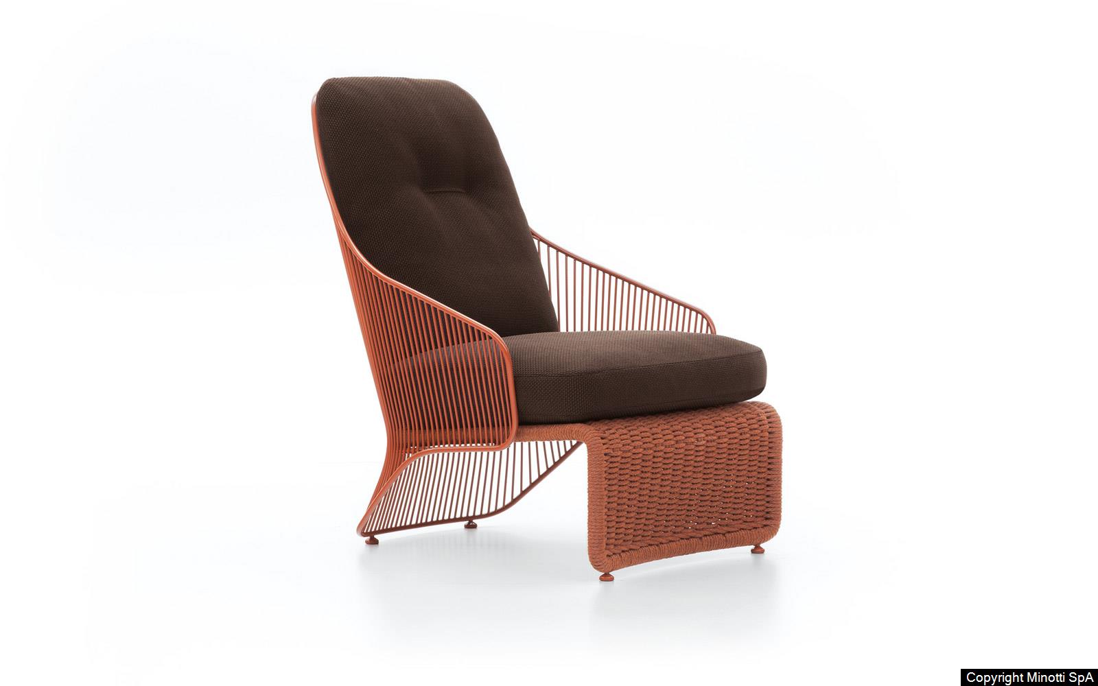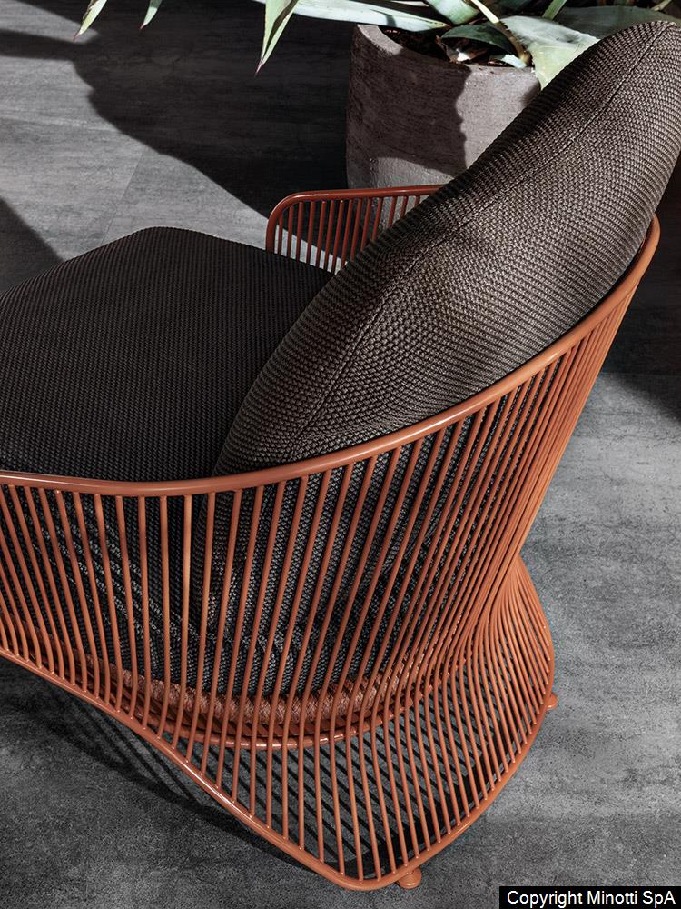Colette “Outdoor” is an armchair with an enveloping shape that comes in an unexpected combination of innovative materials and colors designed to inject a spark of vitality and energy into outdoor living.