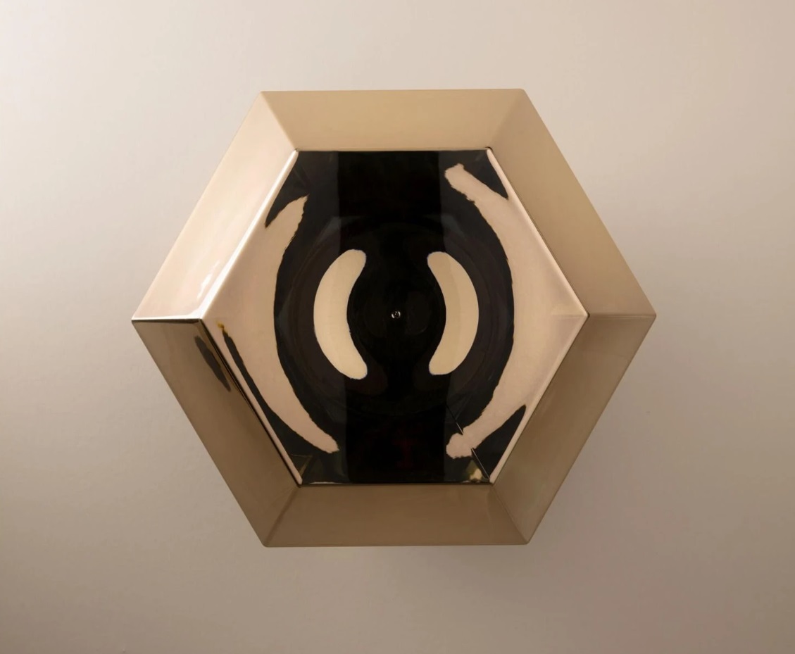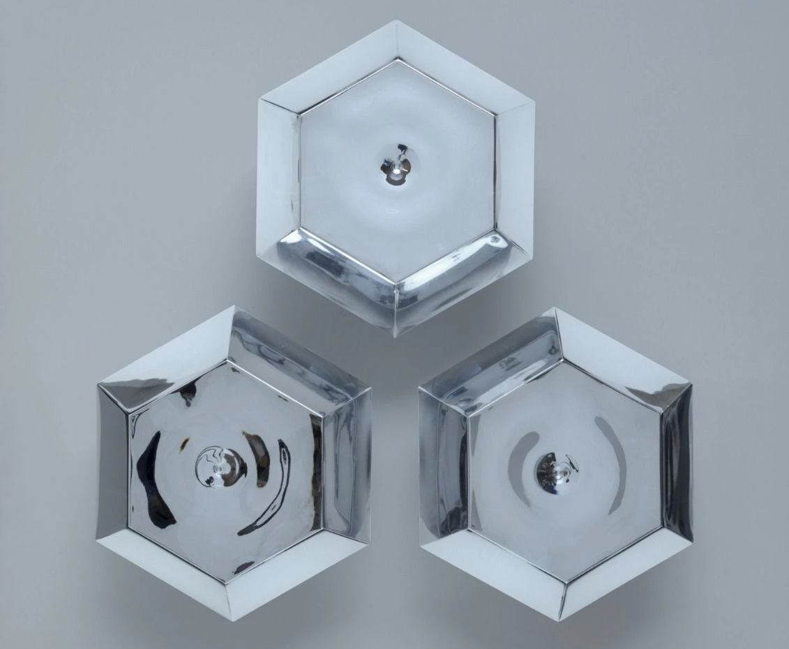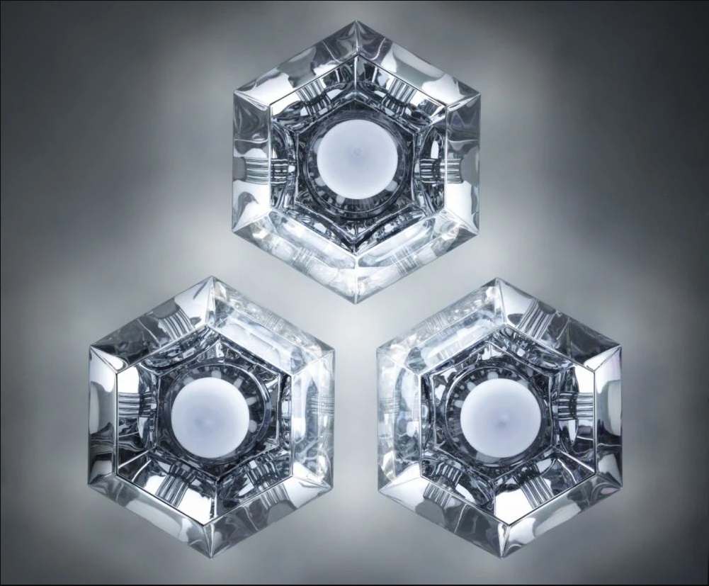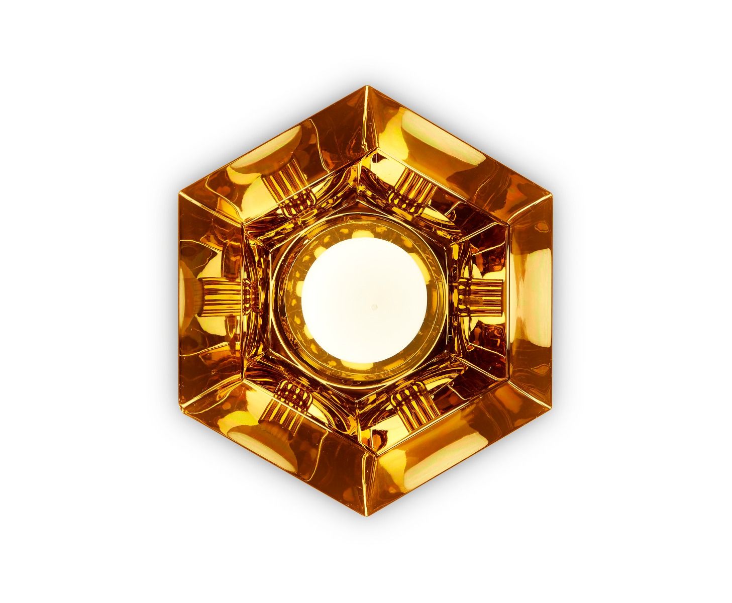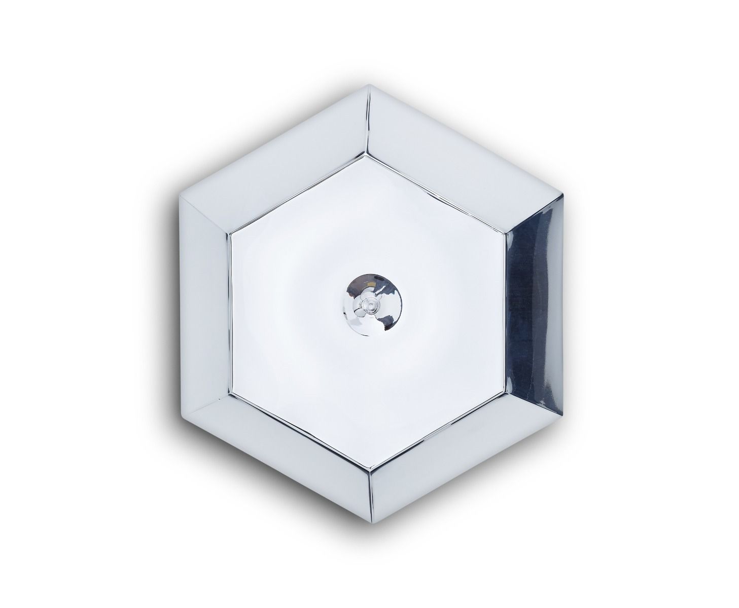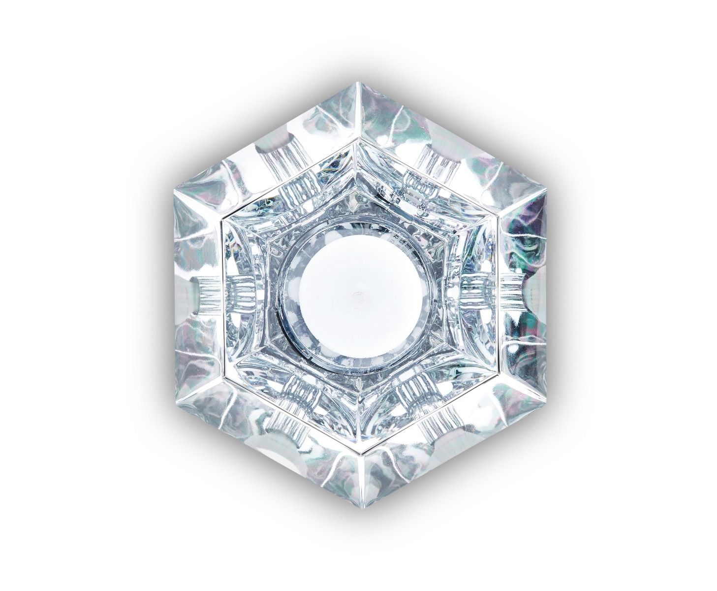 Futuristic and faceted, Cut is an exercise in optics. Its space-age mirror finish when off transforms to reveal a translucent kaleidoscopic gem when switched on. Hypnotising reflections of the luminous orb within repeat infinitely within the diamond cut, vacuum metallised interior. Available in chrome, gold, smoke and blue.