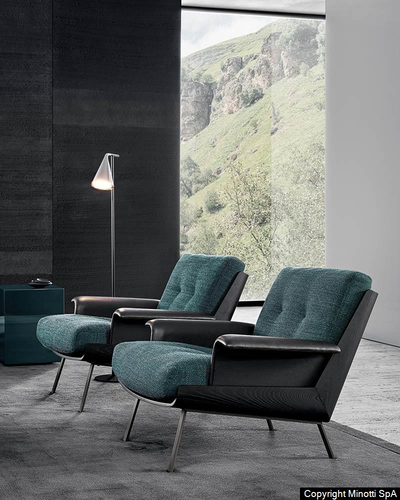 The Daiki family includes armchairs with a deep seat, available both with and without armrests, and footstool.