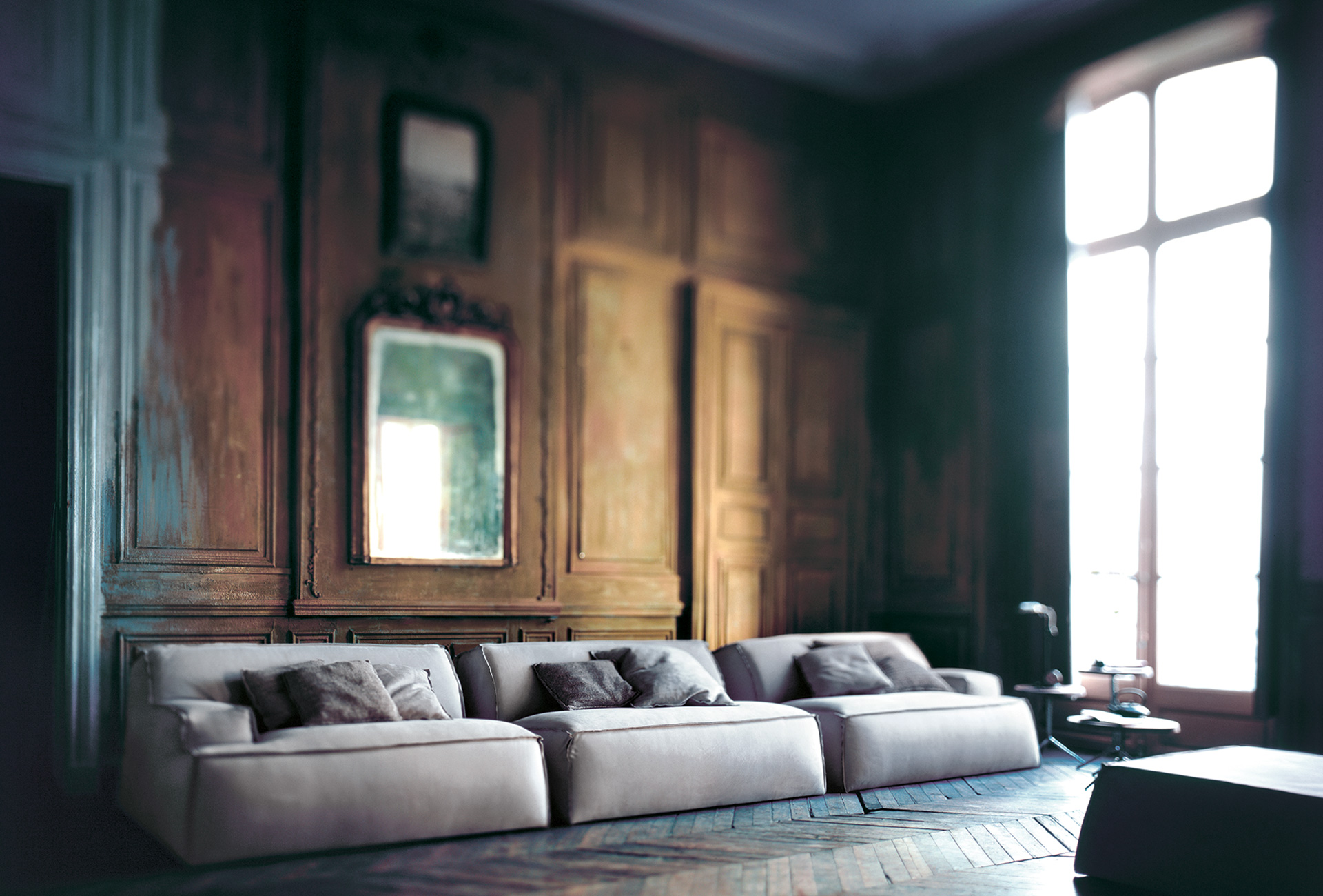 Deconstructed and oversize, with a soft and round shape, the Damasco sofa detaches from the traditional image of leather upholstery through a simplification of shapes and a youthful design. The seating is comfortable and enveloping, characterized by an upholstery sewed with the typical raw cut.
