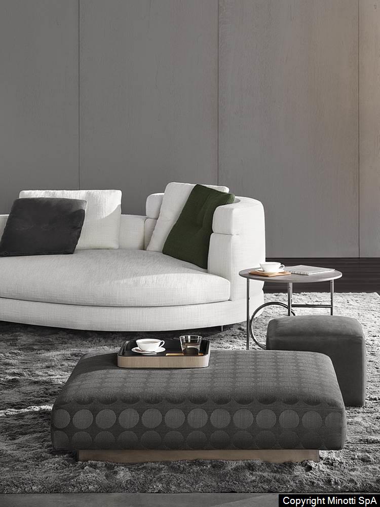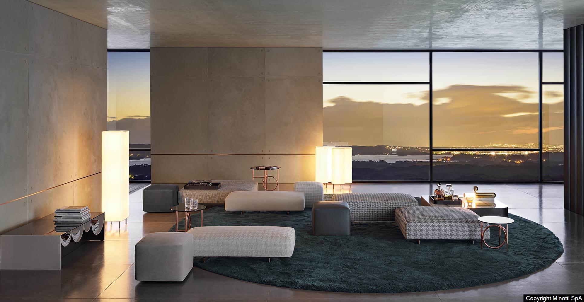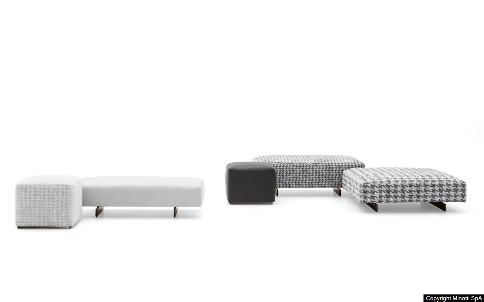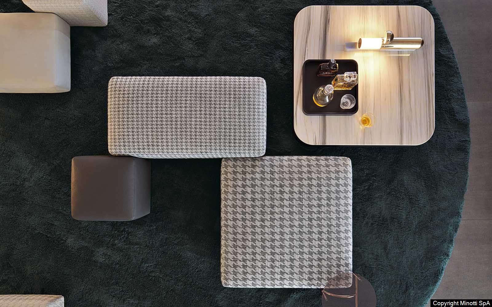 The various combinations of upholstery, which take advantage of the vast choice of fabrics and leathers of the Minotti collection, help to create an ever-changing domino of shades and textures.