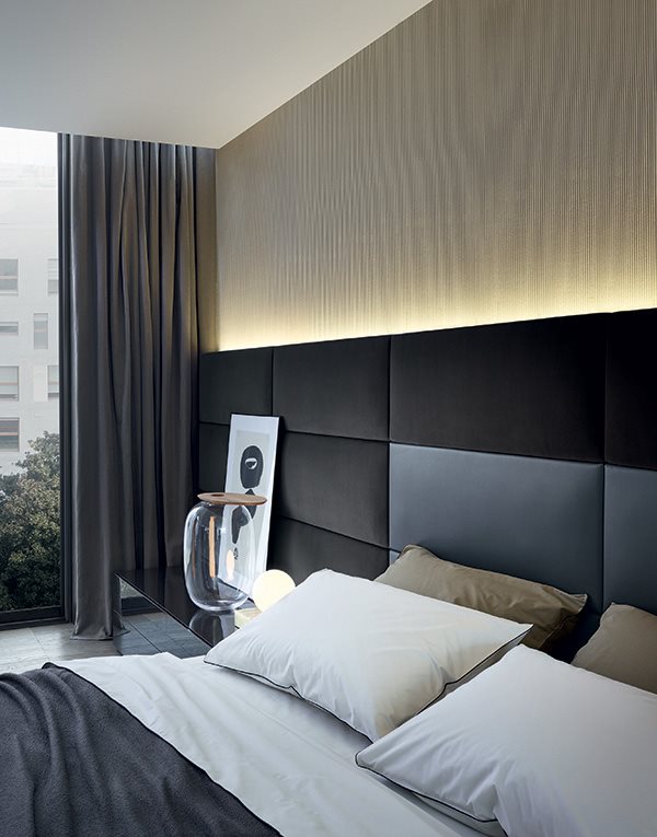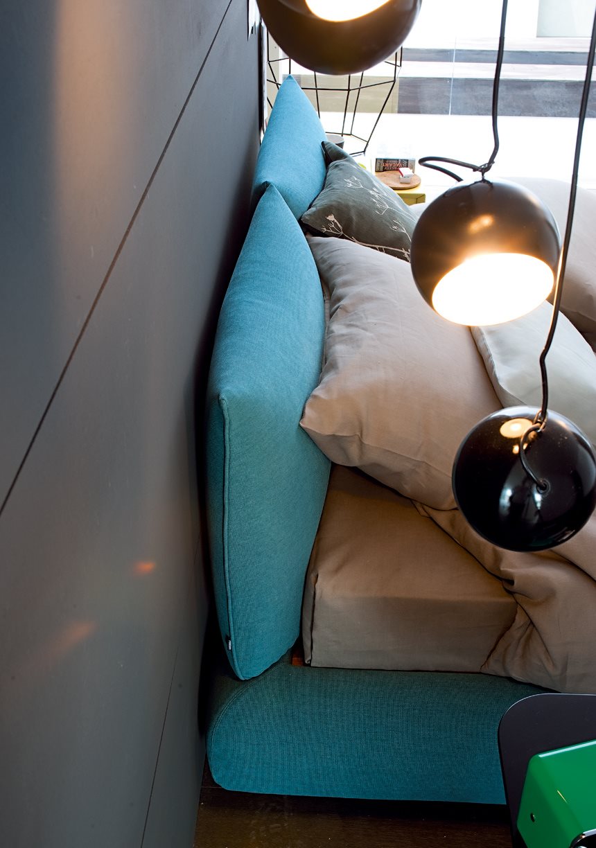 Dream, designed by Marcel Wanders. To simply call it a bed does not do it justice. It is a system that actually furnishes the resting area in an original and personalized way. A series of panels combine to create a headboard that can be customized in different fabric and leather.