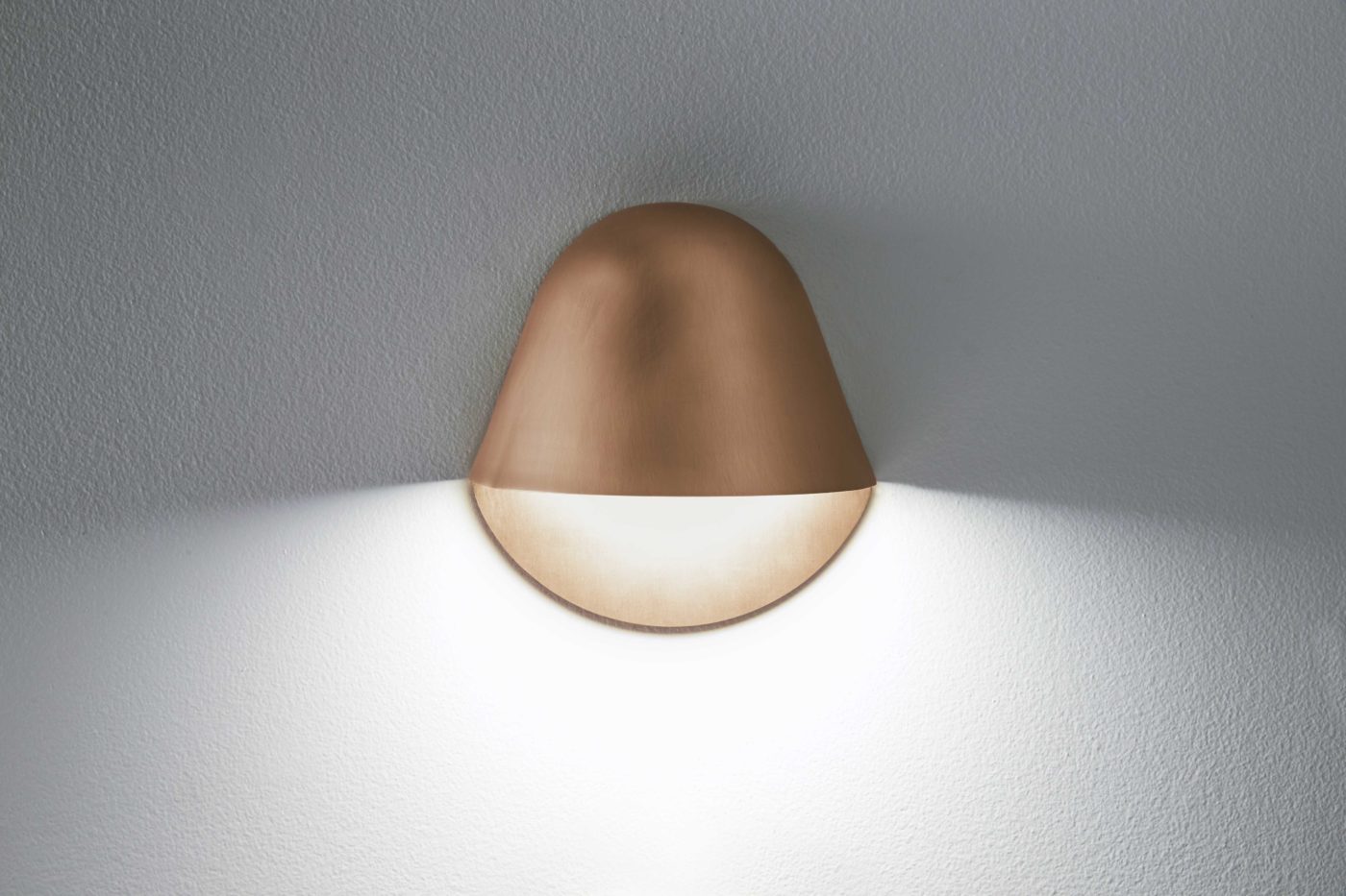 Resuming shapes from art deco, this wall lamp combines a metal sheet with a protruding half-dome. Enoki can be a single design object or combined with other similar elements, assembled with different orientations.