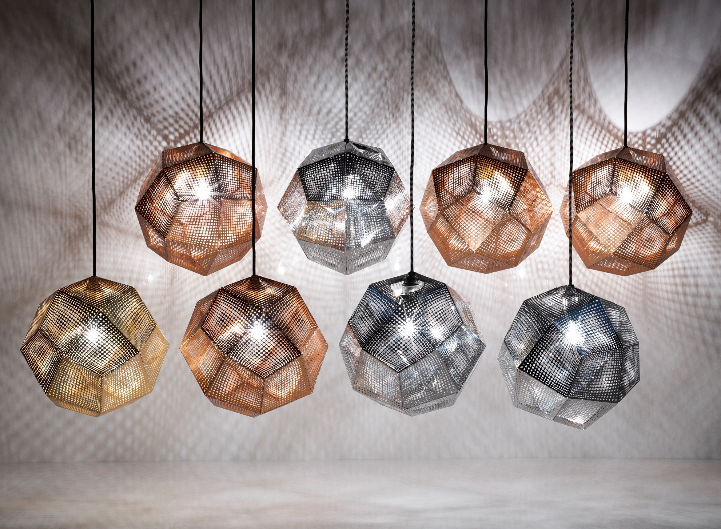Giving out a soft, ambient glow, Etch pendants can be hung individually over a dining table, for example, or for more dramatic effect hang them in multiples using our pendant system. Also available in the copper, steel, black and brass in 32cm or 50cm size and as a set of tea light holders.