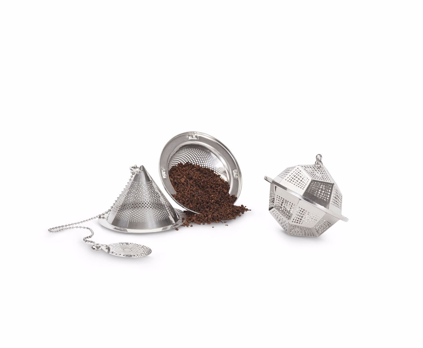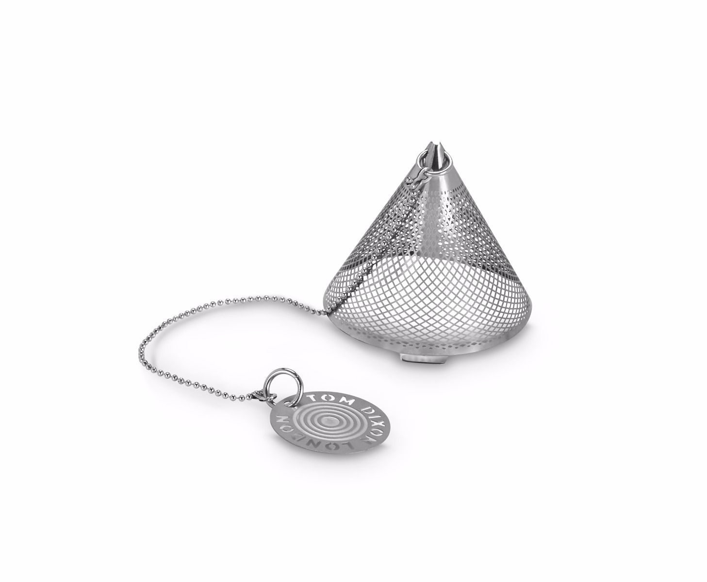 The very best tea is made from loose leaves and our contemporary update for the traditional British teatime tool infuses the perfect cup. A stainless steel strainer with a minutely etched surface is formed into a neat cone shape; hung on a metal string with a circular tab, the bottom of the cone delicately slides open for ease of use and cleaning. Use inside a tea pot or for a single cup. Designed in London for teatime anywhere.